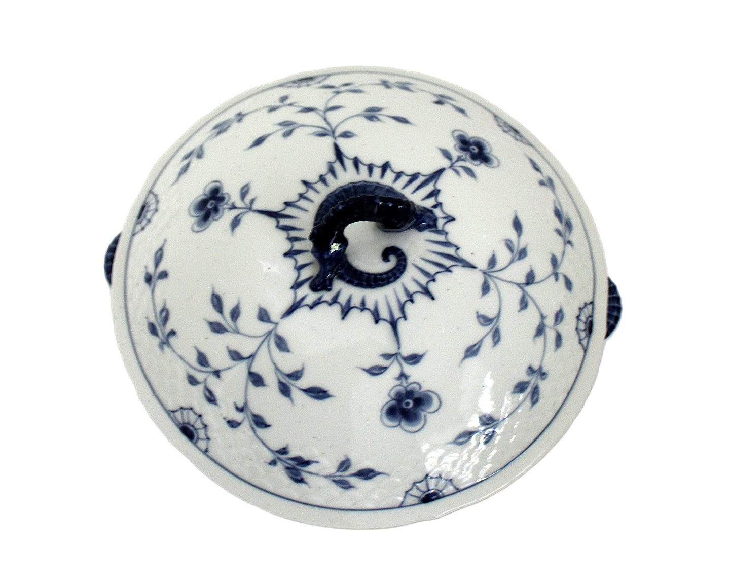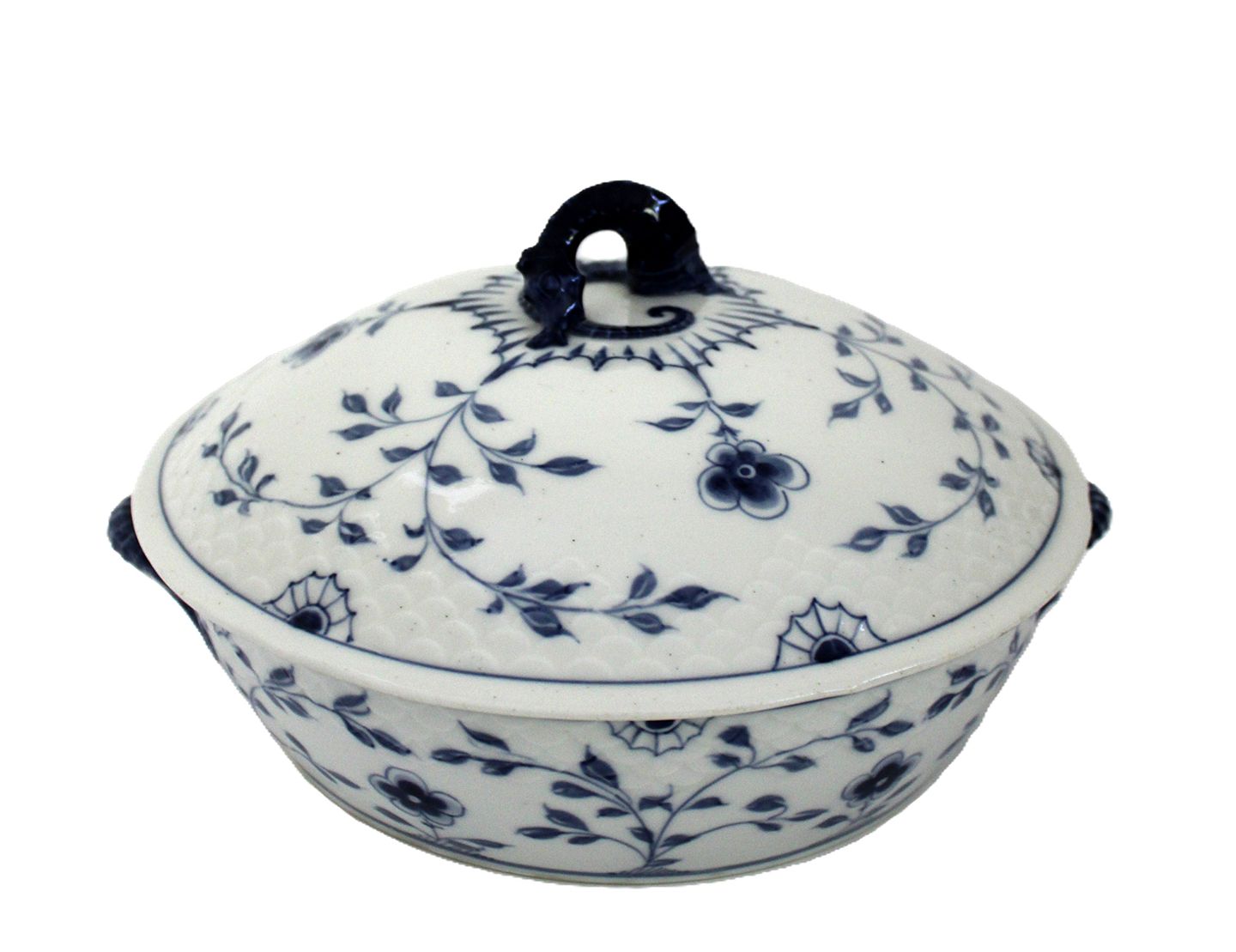 Bing & Grøndahl, Sommerfugl, Lågfad, terrin. Kartoffelskål med låg. Gratinskål med låg. Produceret i perioden 1902-1914. Med den tids småprikker i glasuren. I. sortering. Fin stand.Højde med låg 12 cm. Længde med ører 23 cm. Pris: 1500 kr. stk. Lager: 1
