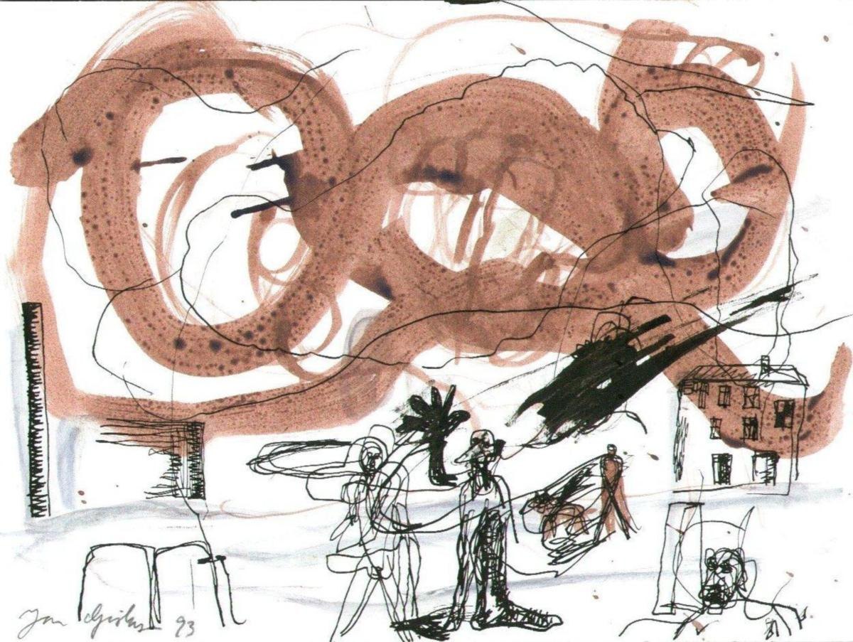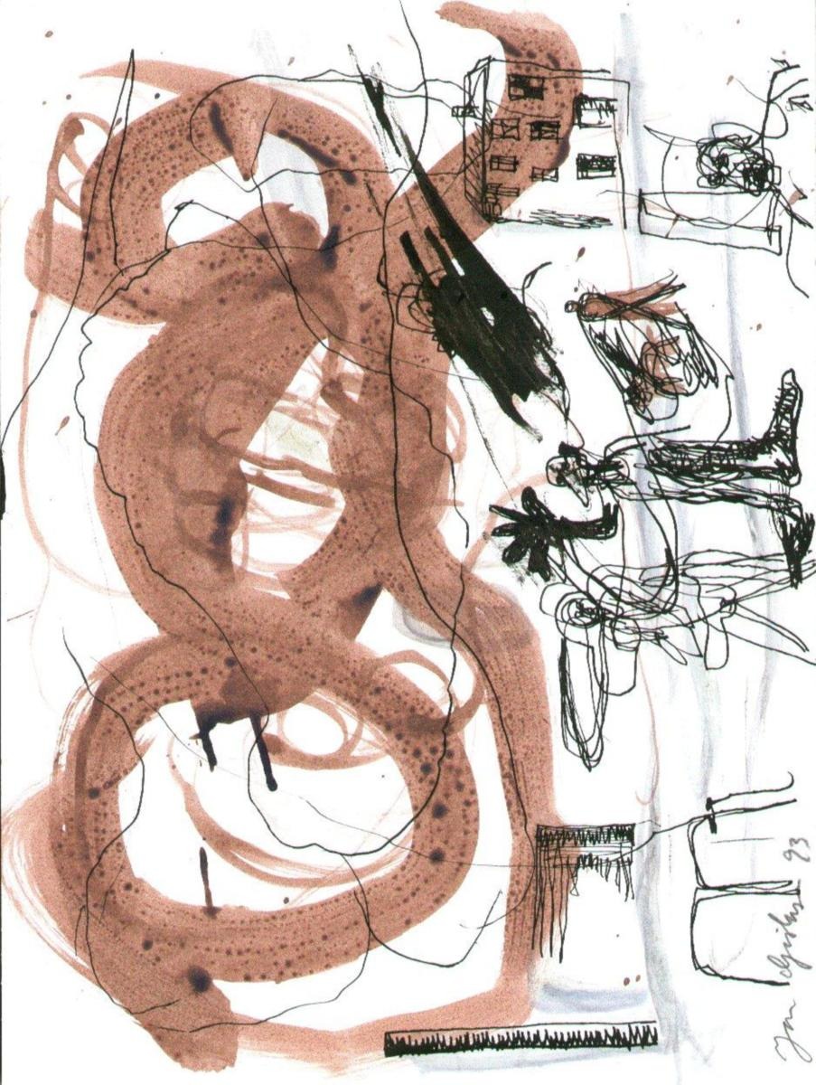 Gislason, Jon (1955-): Komposition. Aquarell/Tusche auf Papier. Signiert: Jon Gislason 98. 31,5 x 24 cm.Ohne Rahmen.