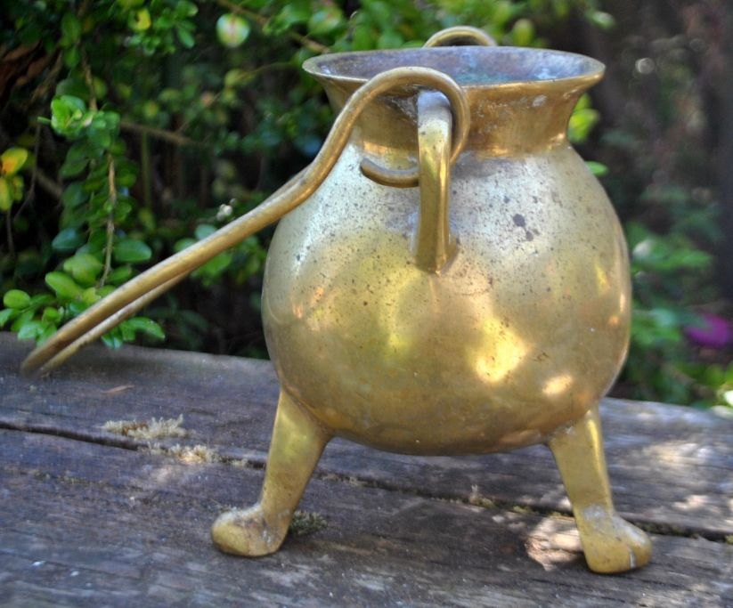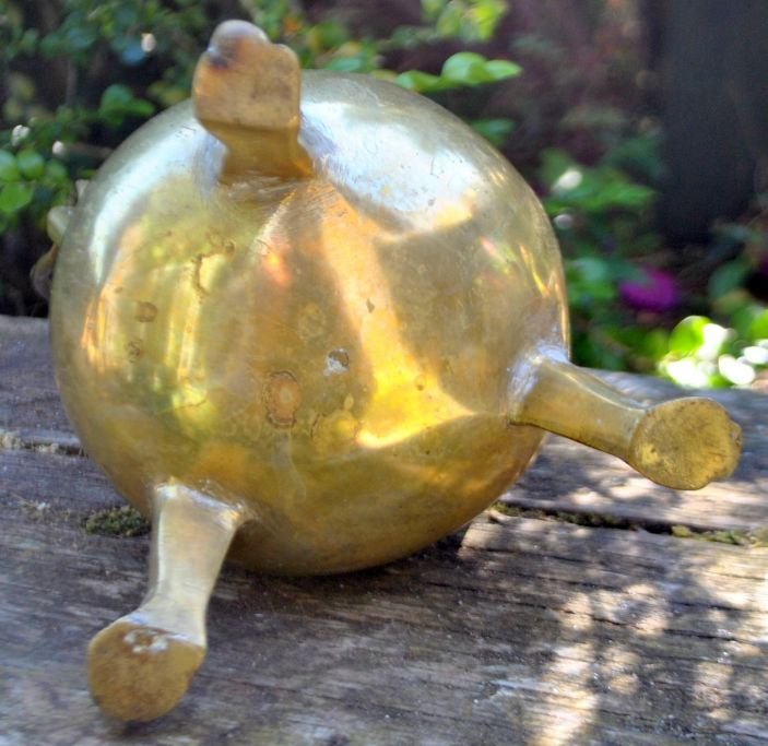 Barocker dreibeiniger Henkeltopf, 18. Jahrhundert. Dänemark. Ohne Marke. H.: 15 cm. Höhe mit Henkel: 30 cm.Selten!
