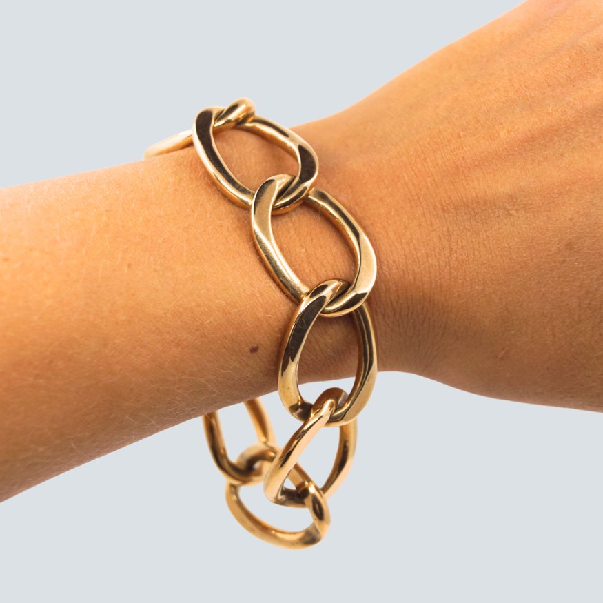 Flemming Kjerultt; Leddelt armbånd i 14 kt. guld, i kraftig kvalitet