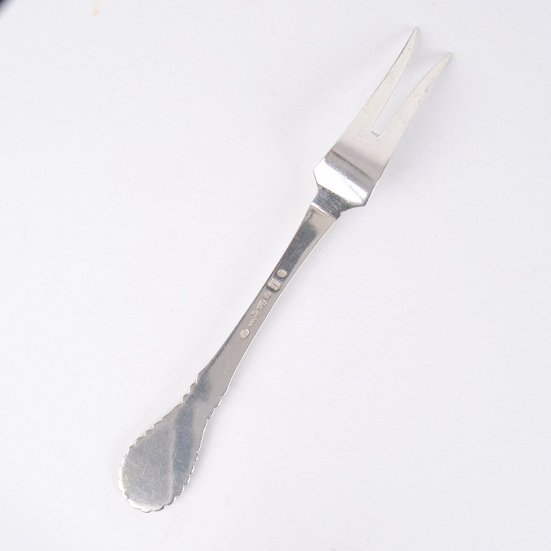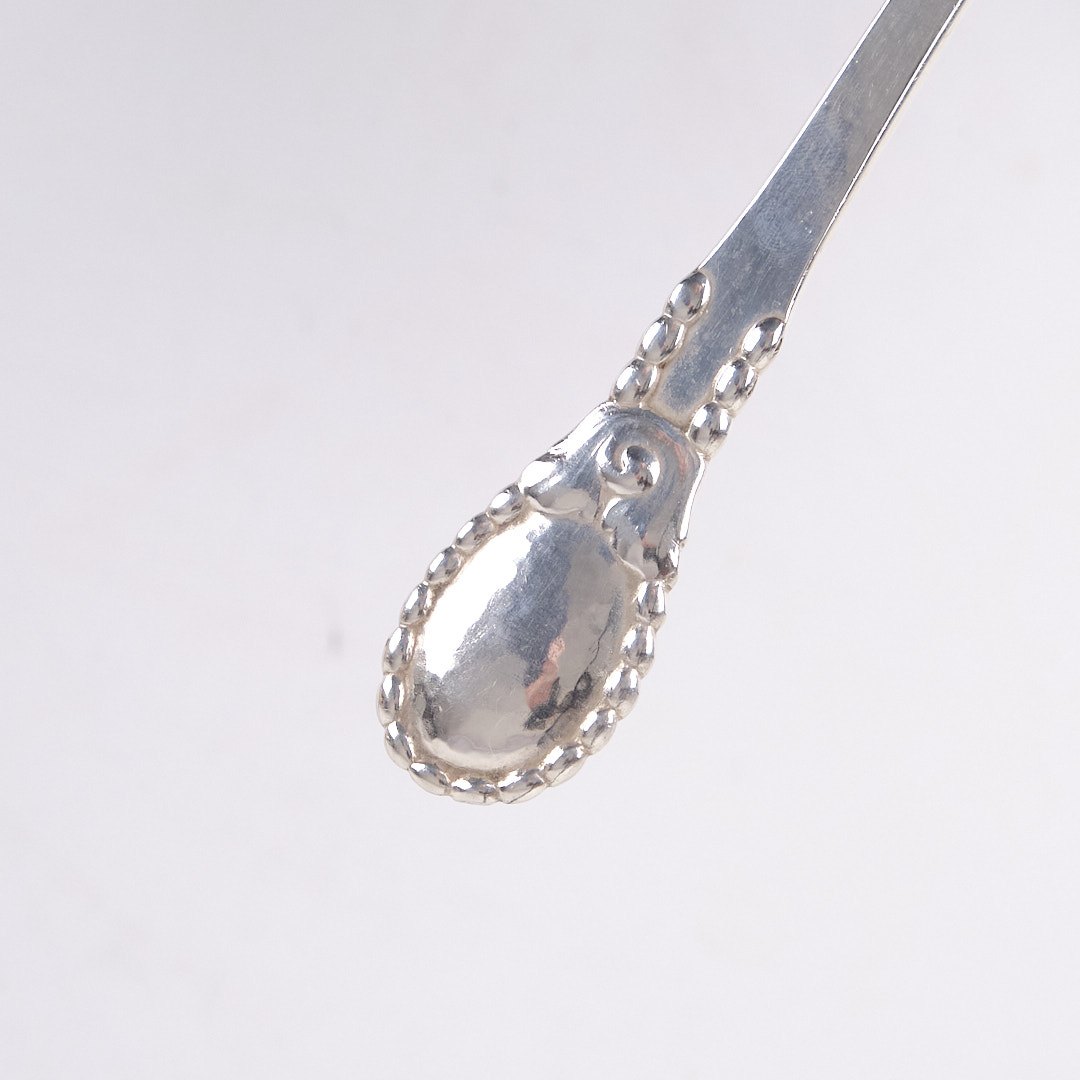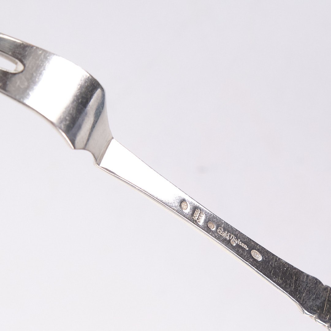 Stegegaffel i mønster nr. 13 af Evald Nielsen. Tretårnet sølv, stemplet. Klassisk dansk sølvdesign i tidløs kvalitet.— Sølvsmed: Evald Nielsen