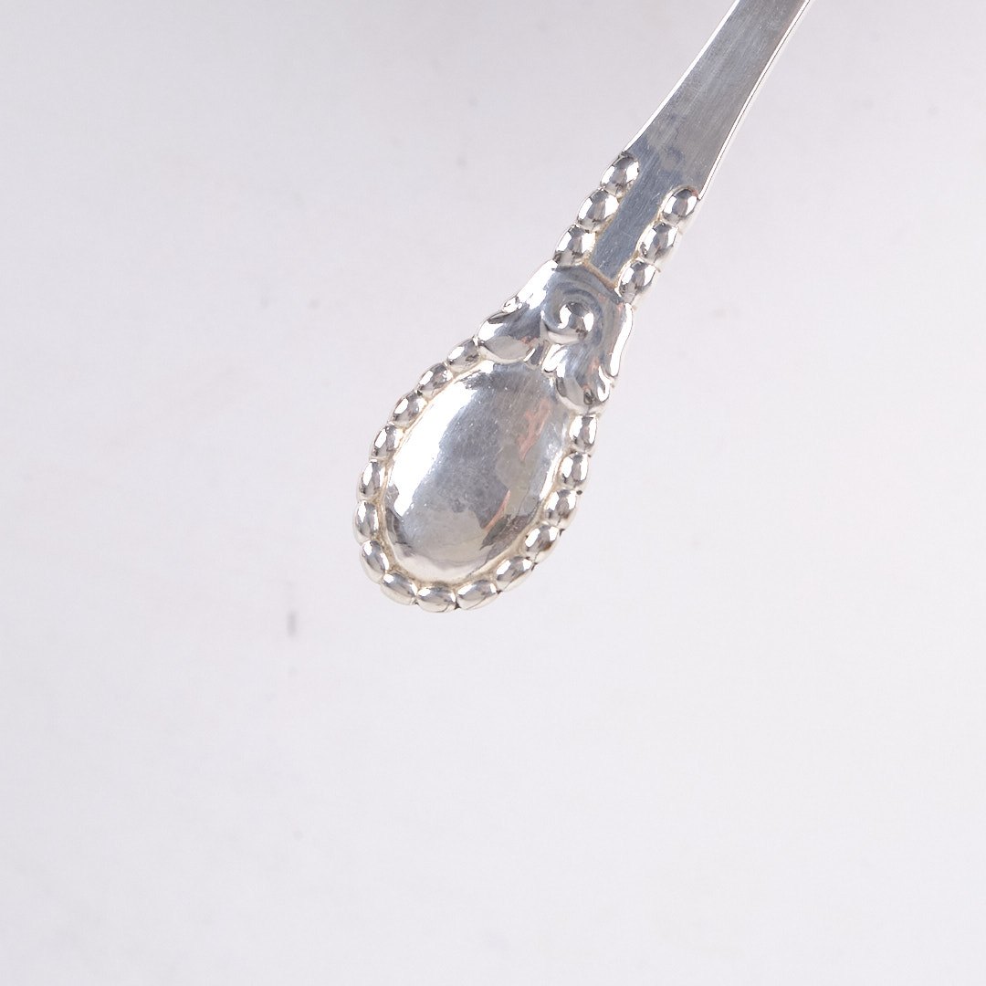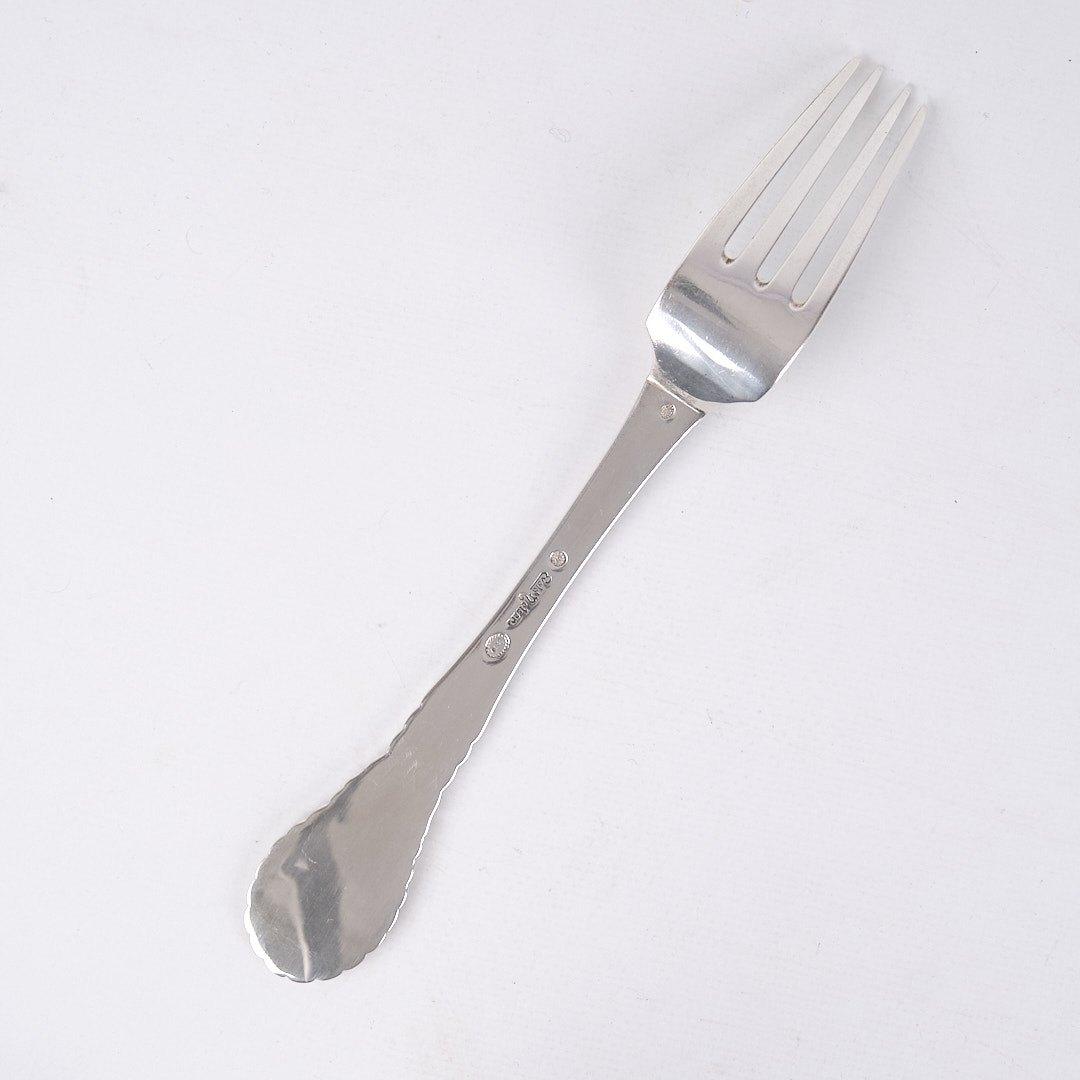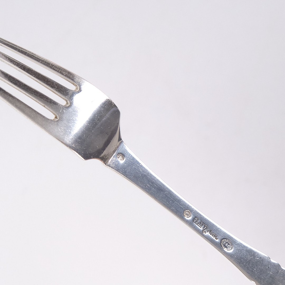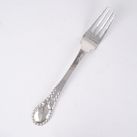 Middagsgaffel i mønster nr. 13 af Evald Nielsen. Tretårnet sølv, stemplet. Klassisk dansk sølvdesign.Spørg efter antal.
