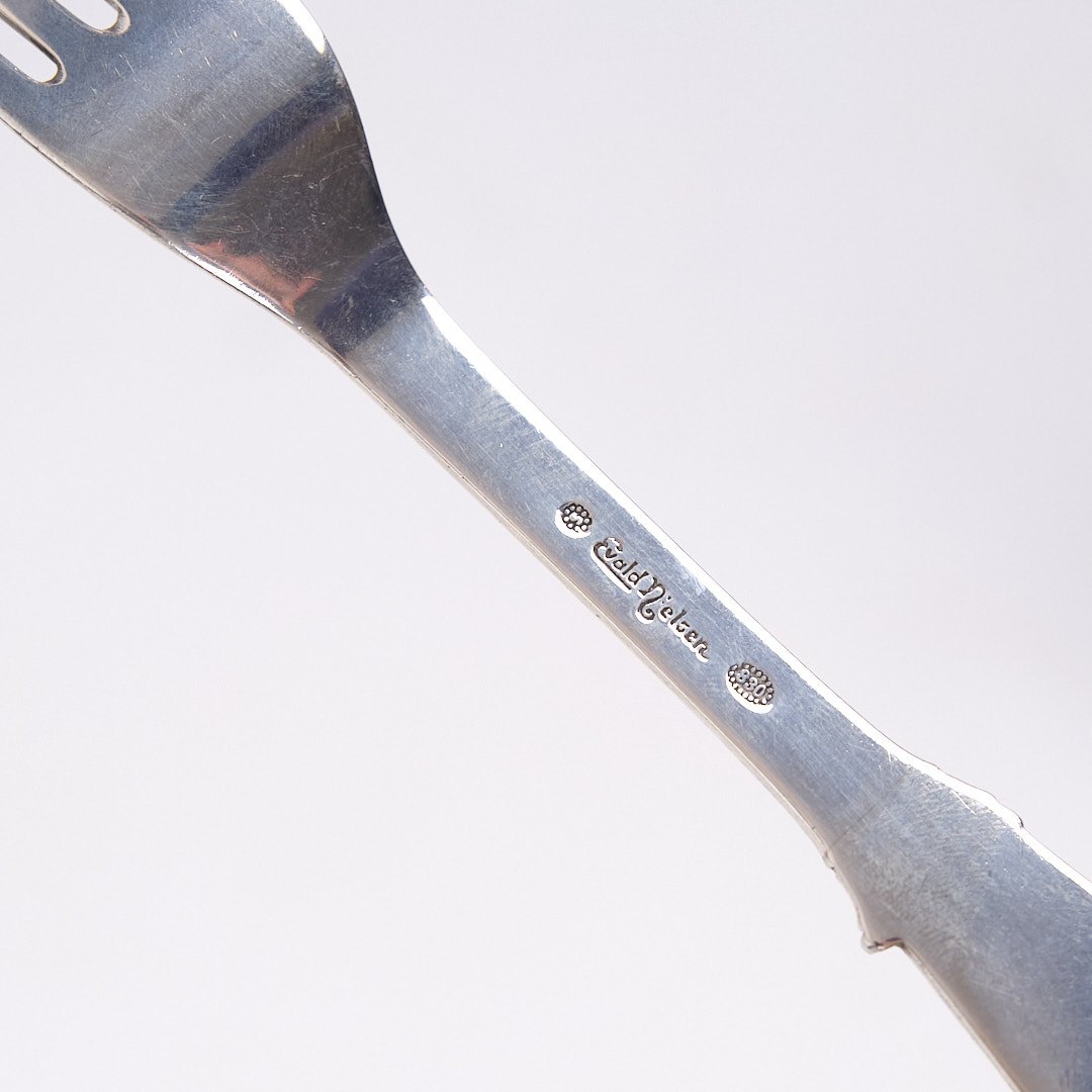 Gaffel med Konge-mønster af Evald Nielsen. Sølv 830s, stemplet.— Sølvsmed: Evald Nielsen