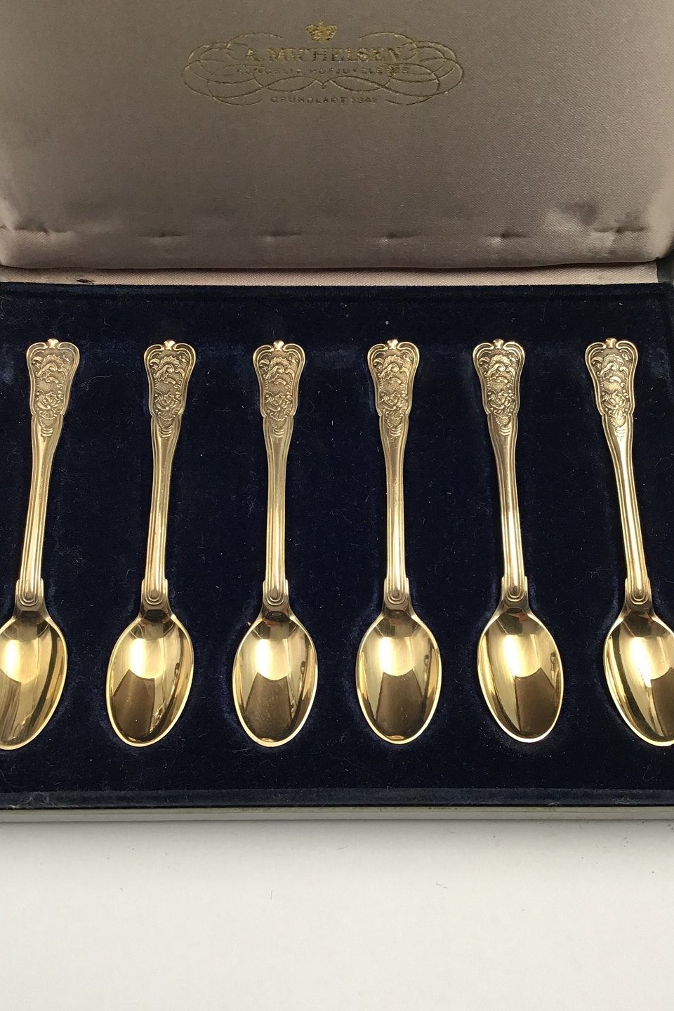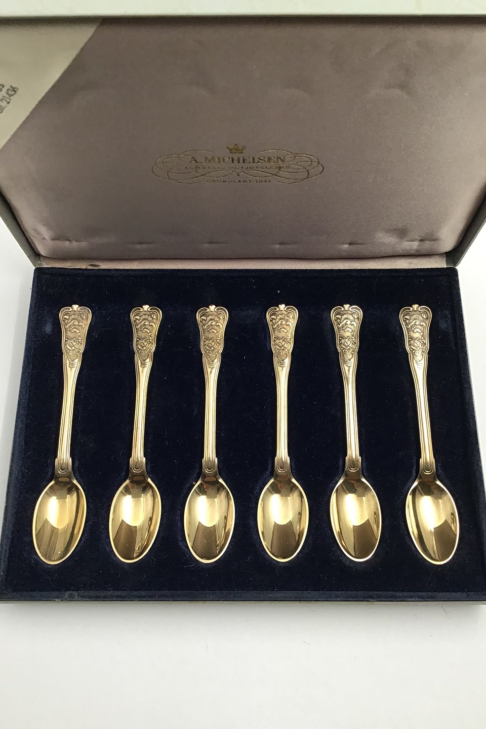 Anton Michelsen Sterling Sølv Rosenborg Moccaske Sæt (6) ForgyldtMåler 9 cm (3.64 inch) (Æske)