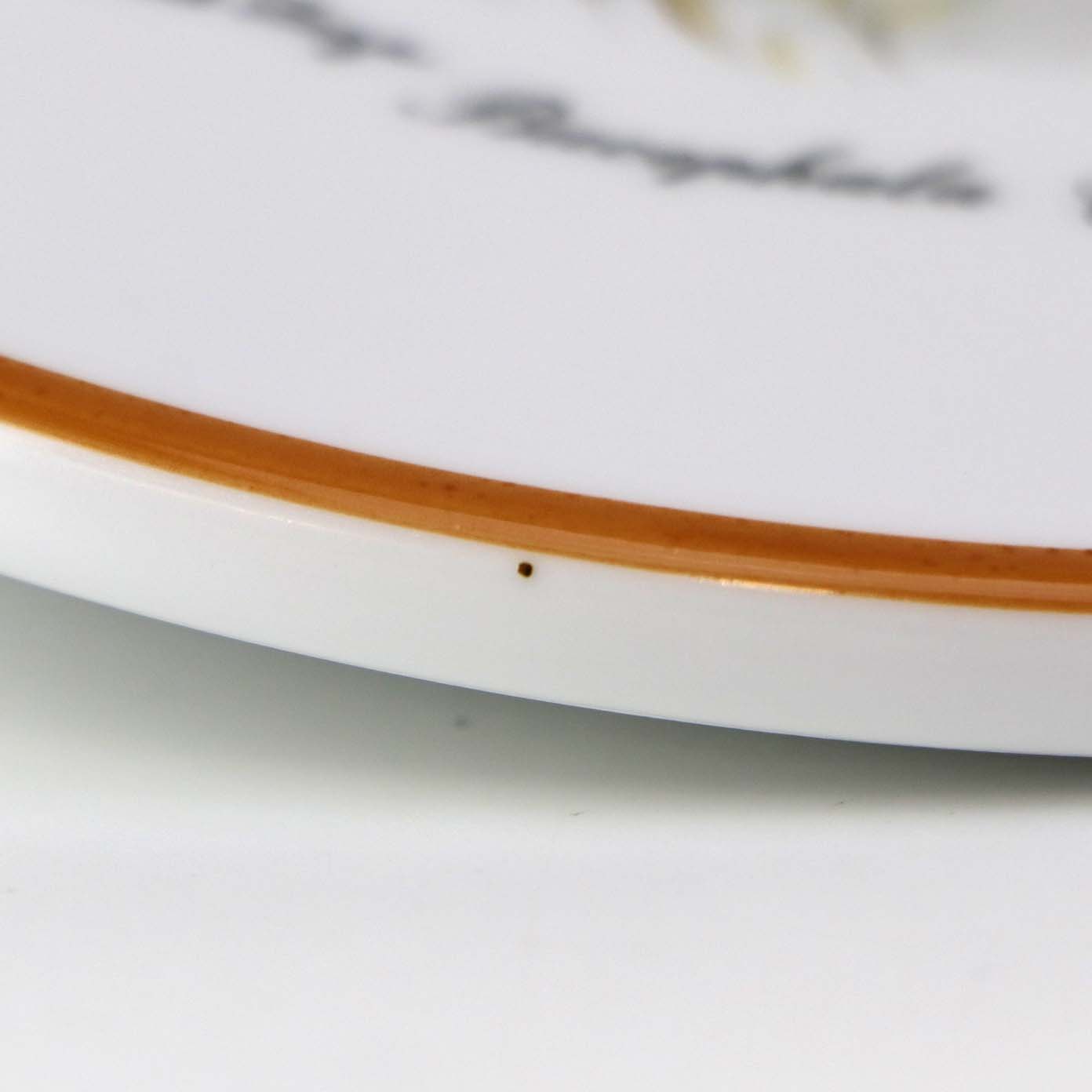 Fremstår med enkelt brun plet under glasuren.
