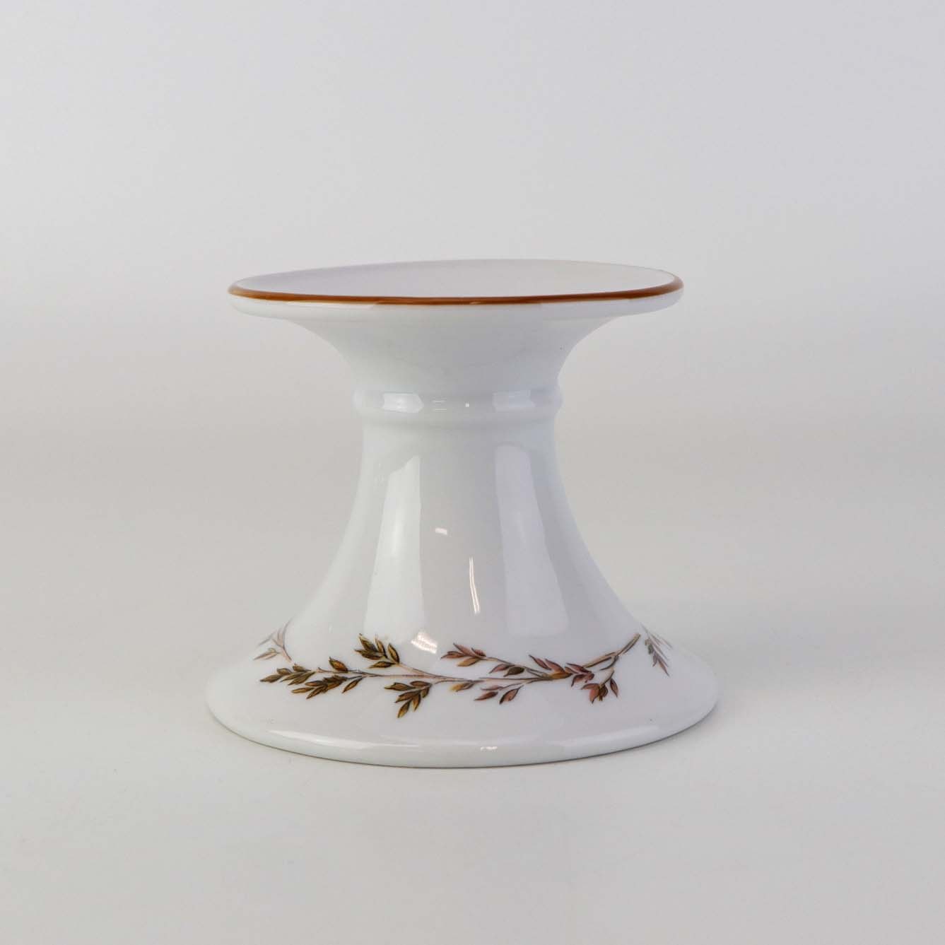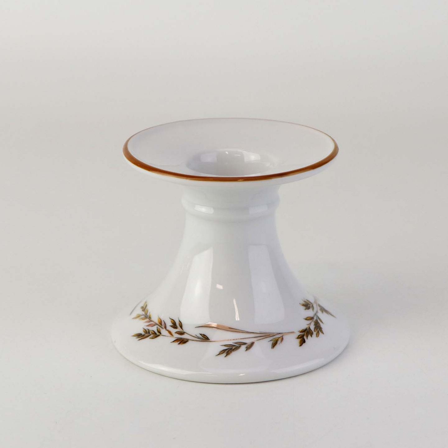 Lysestage i porcelæn med motiv af grene med blade fra stellet Jagtstel. Formgiver Mads Stage