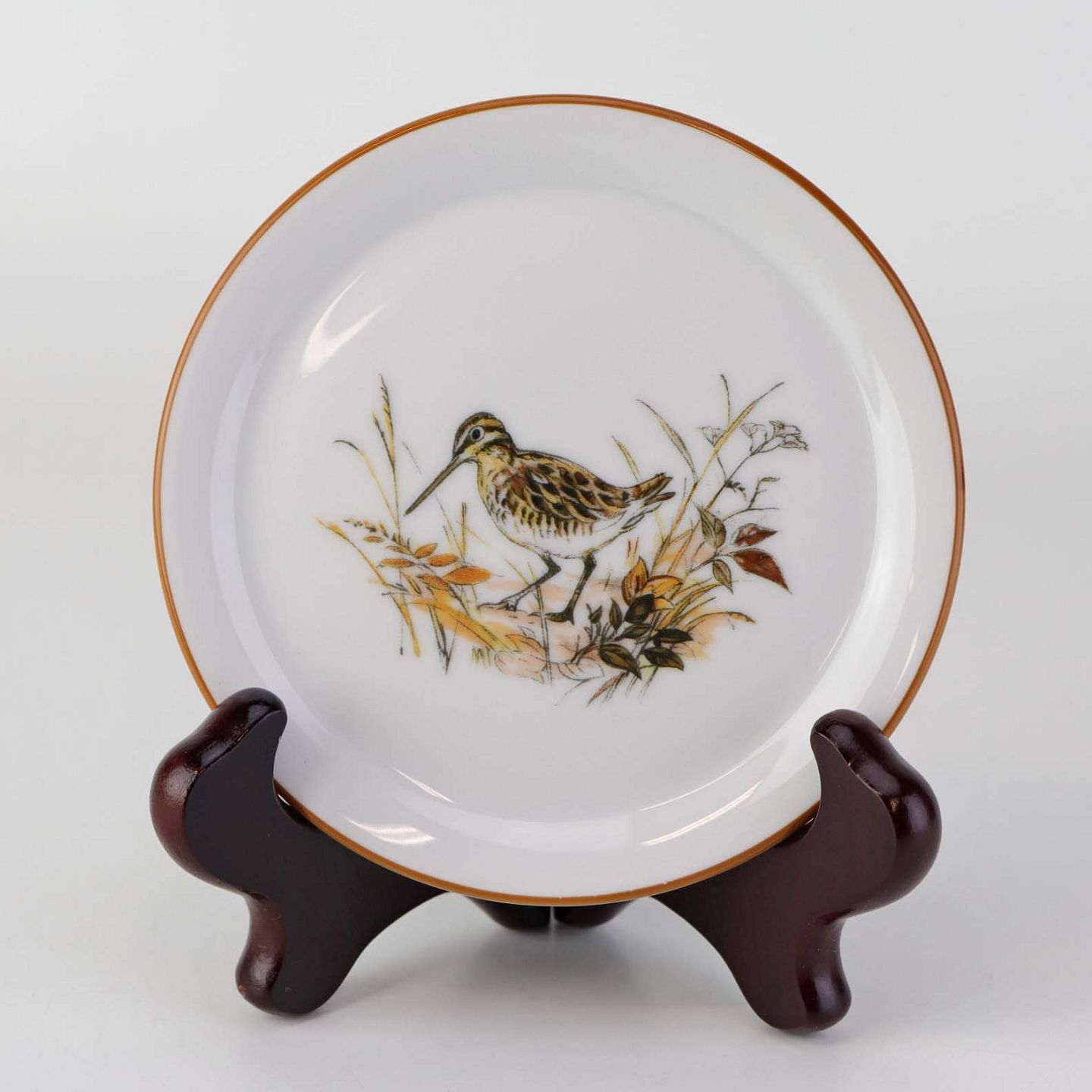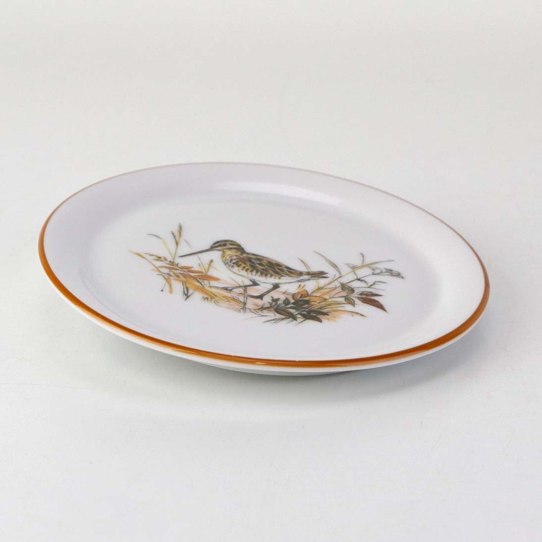 Rund asiet i porcelæn med motiv af en sneppe fra stellet Jagtstel.Formgiver Mads Stage