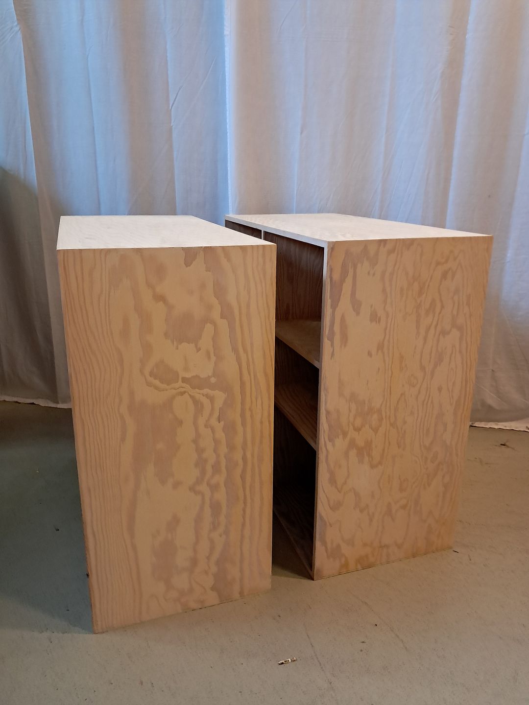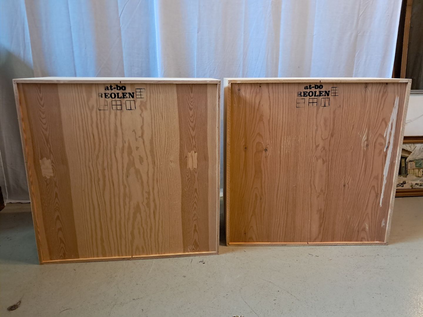 2 At-Bo reolkasser i krydsfiner, fra 2000erne.De har brugsspor og der medfølger ikke ophæng.