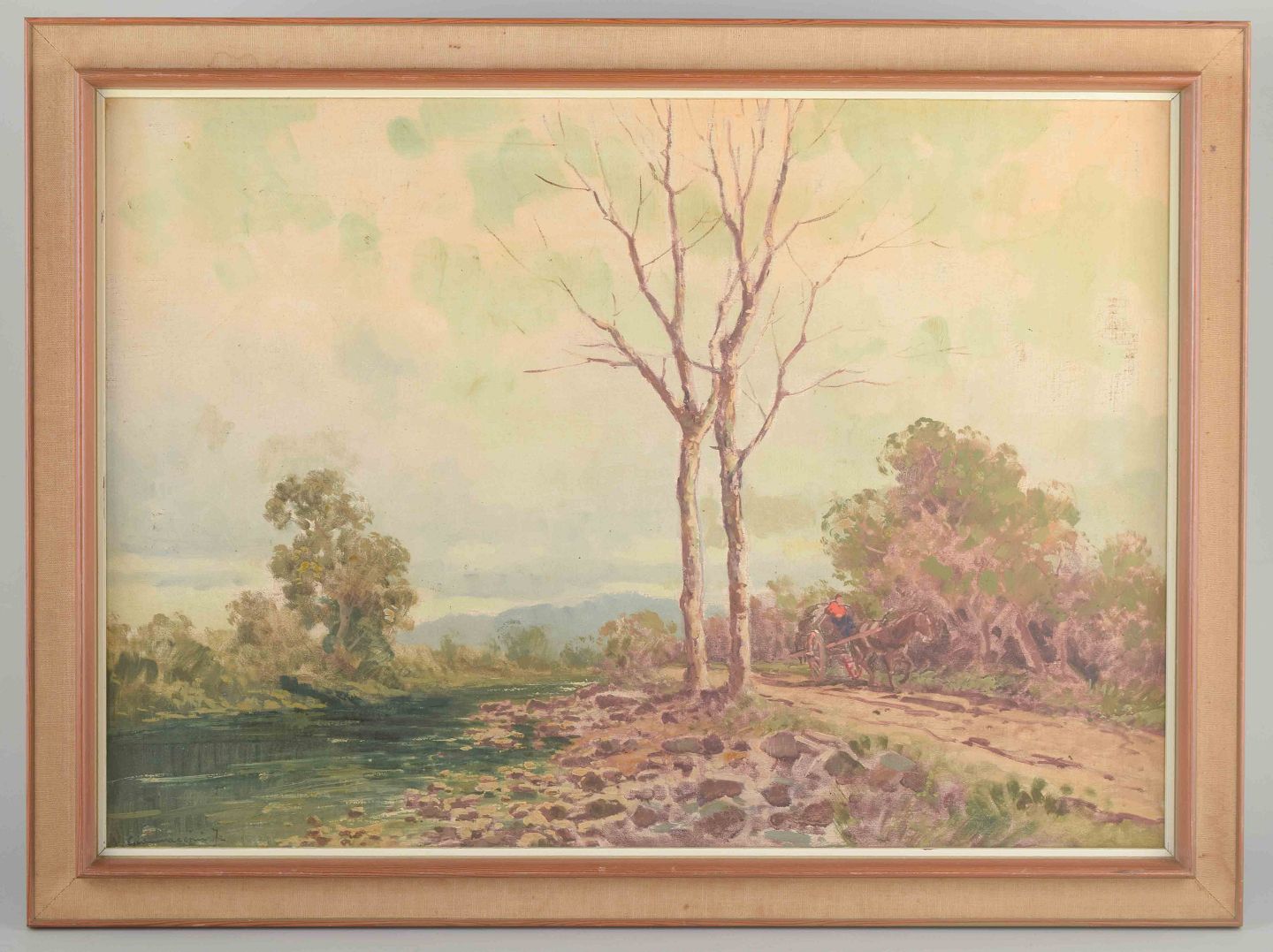 Ilio Giannaccini (1897-1968)Landskab med vej og vogndriver.