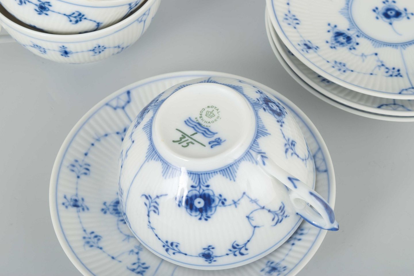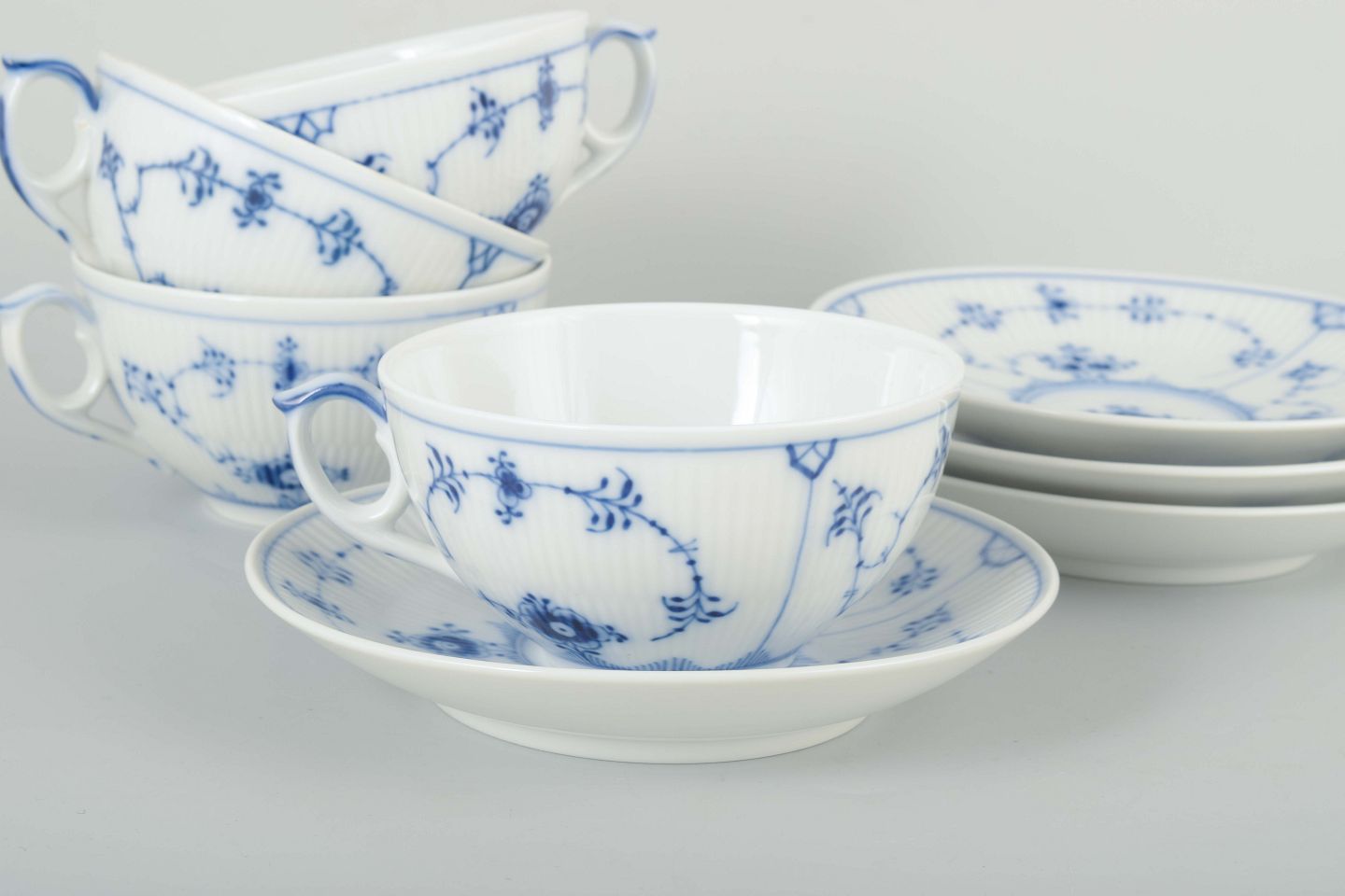 Royal CopenhagenMusselmalet Riflet, tekopper med underkopper, sent 1900-tallet.