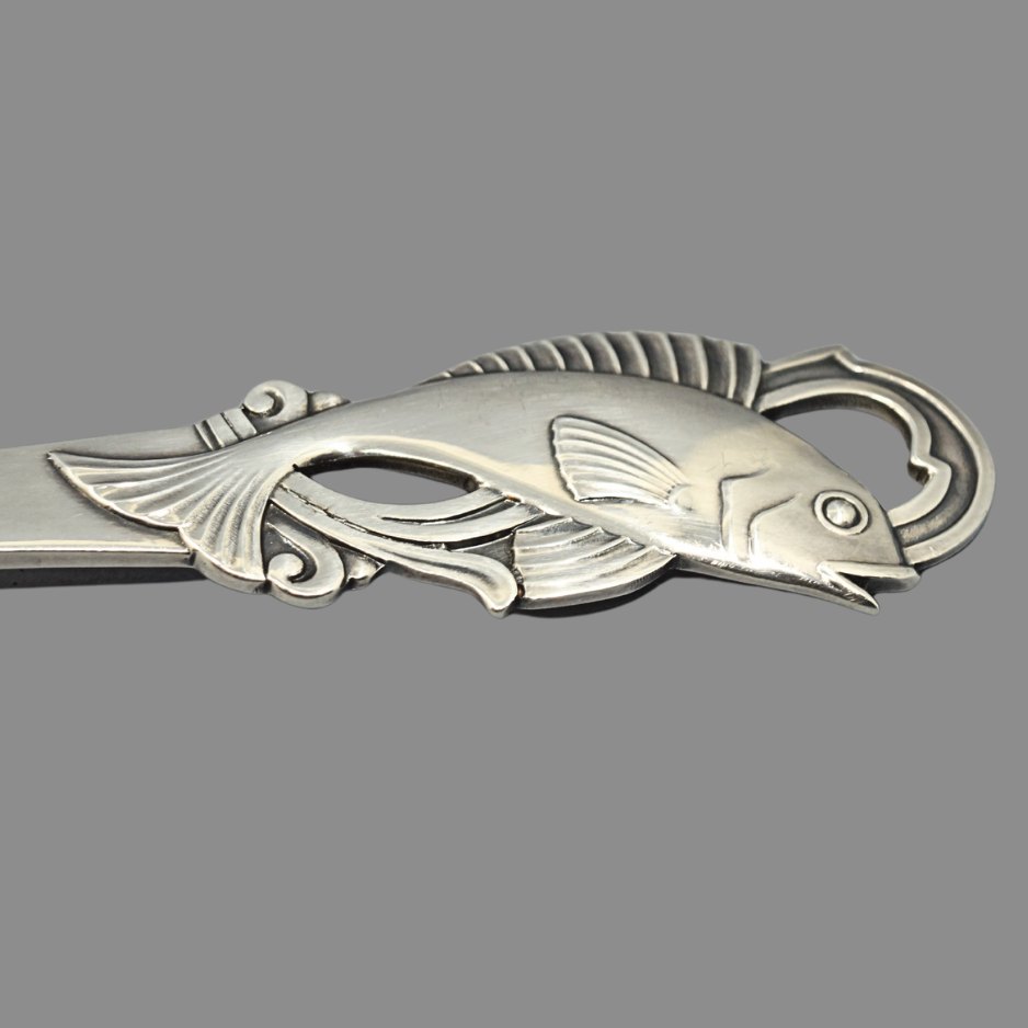 Cohr sølv fiskebestikCohr; Fiskeserveringssæt af sterling sølv, prydet med fiskemotiv.