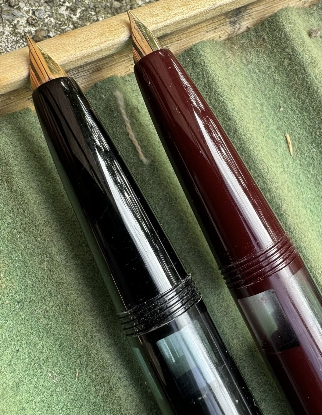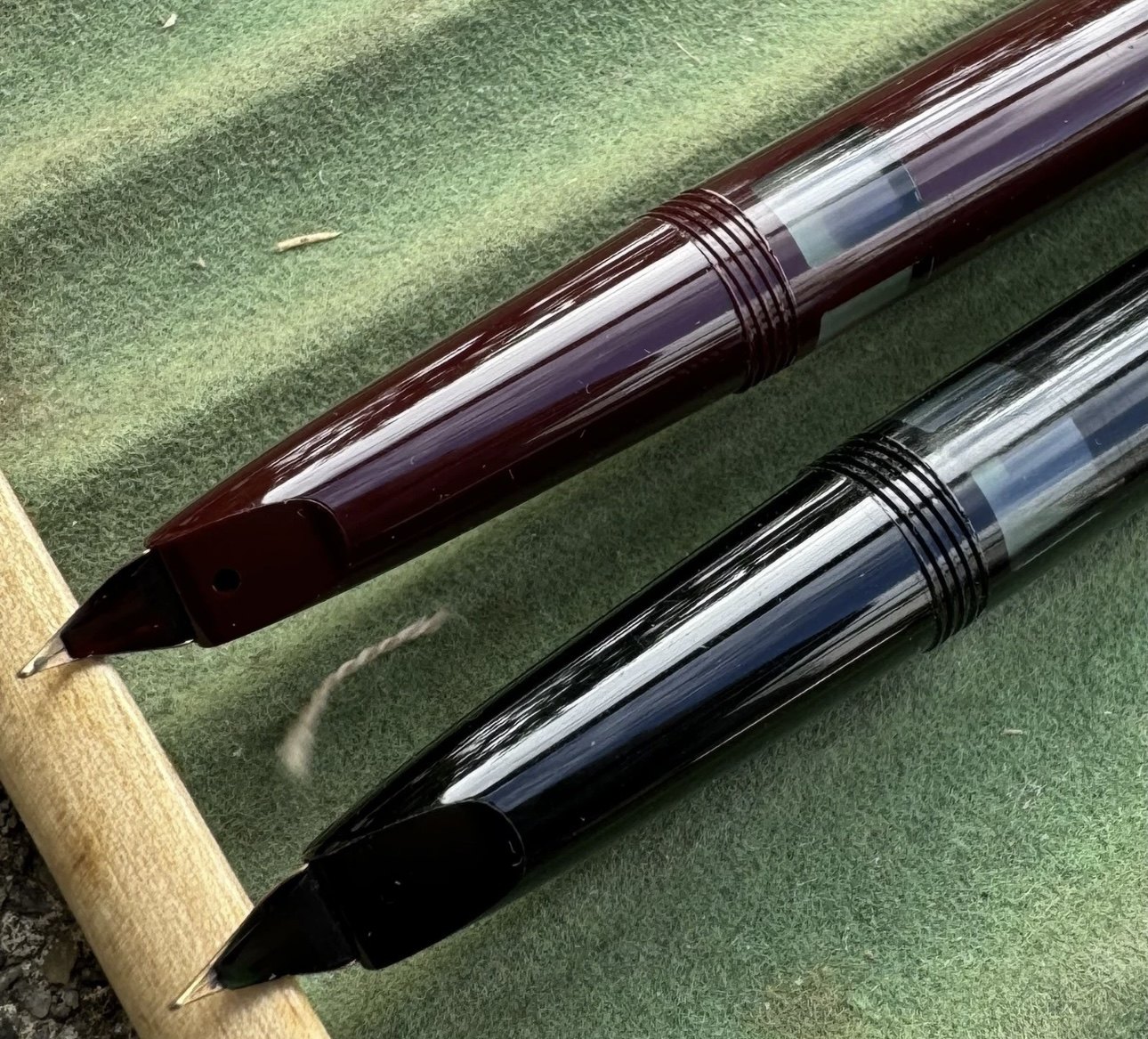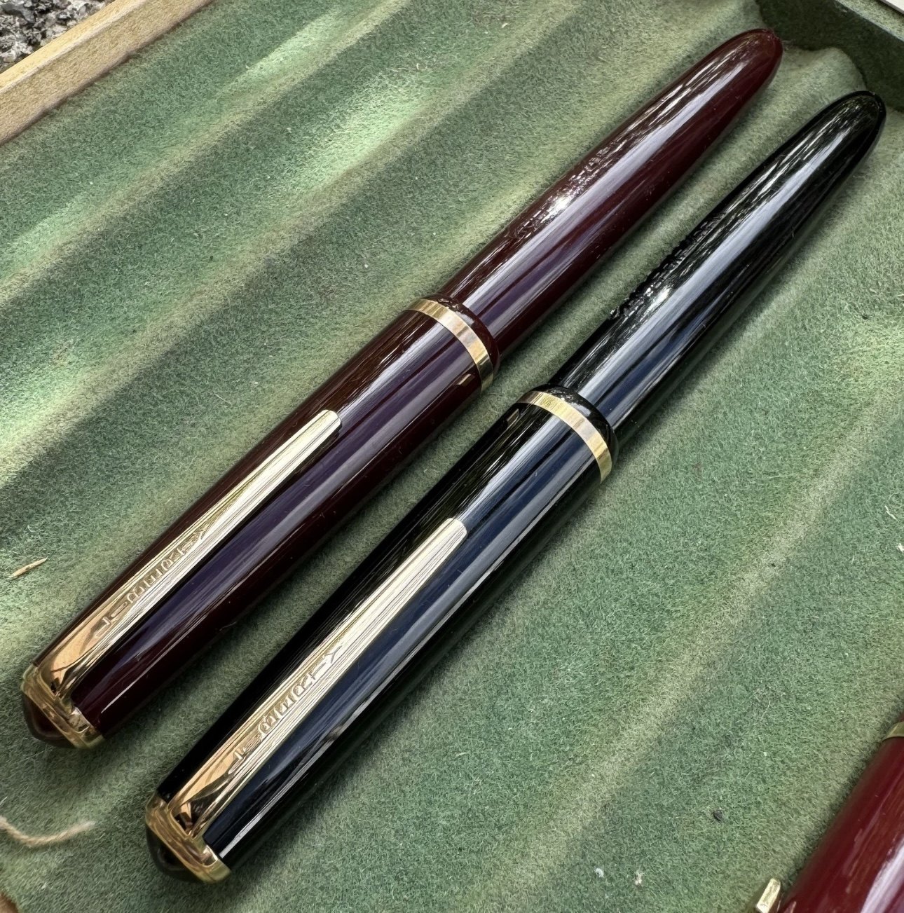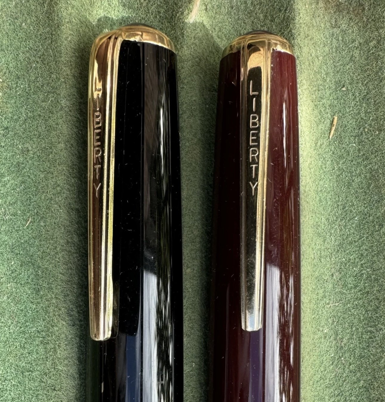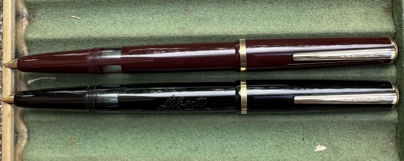 ALDRIG BRUGT - To Liberty 501 fyldepenne i sort og rød I PERFEKT UBRUGT STAND. Piston filler. Klar til brug. Fremstillet i 1950’erne. I god stand. Ingen skader eller reparationer. Mål: 13,2 cm lange.