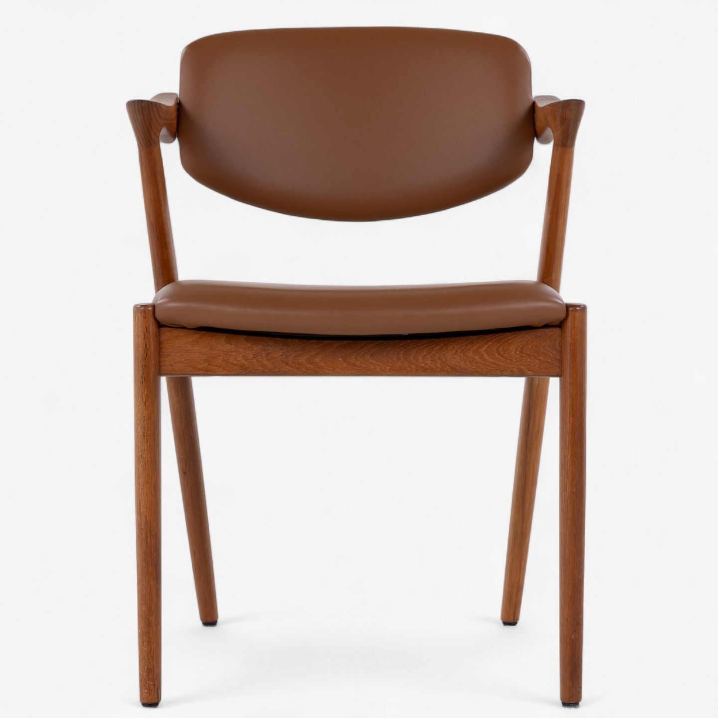Kai Kristiansen / Schou Andersen MøbelfabrikNO 42 - Sæt á 6 'Z-chairs'-armstole i teak m. sæde og ryg betrukket i nyere Savanne-semi-anilin læder (farve: Walnut). Formgivet i 1950'erne.