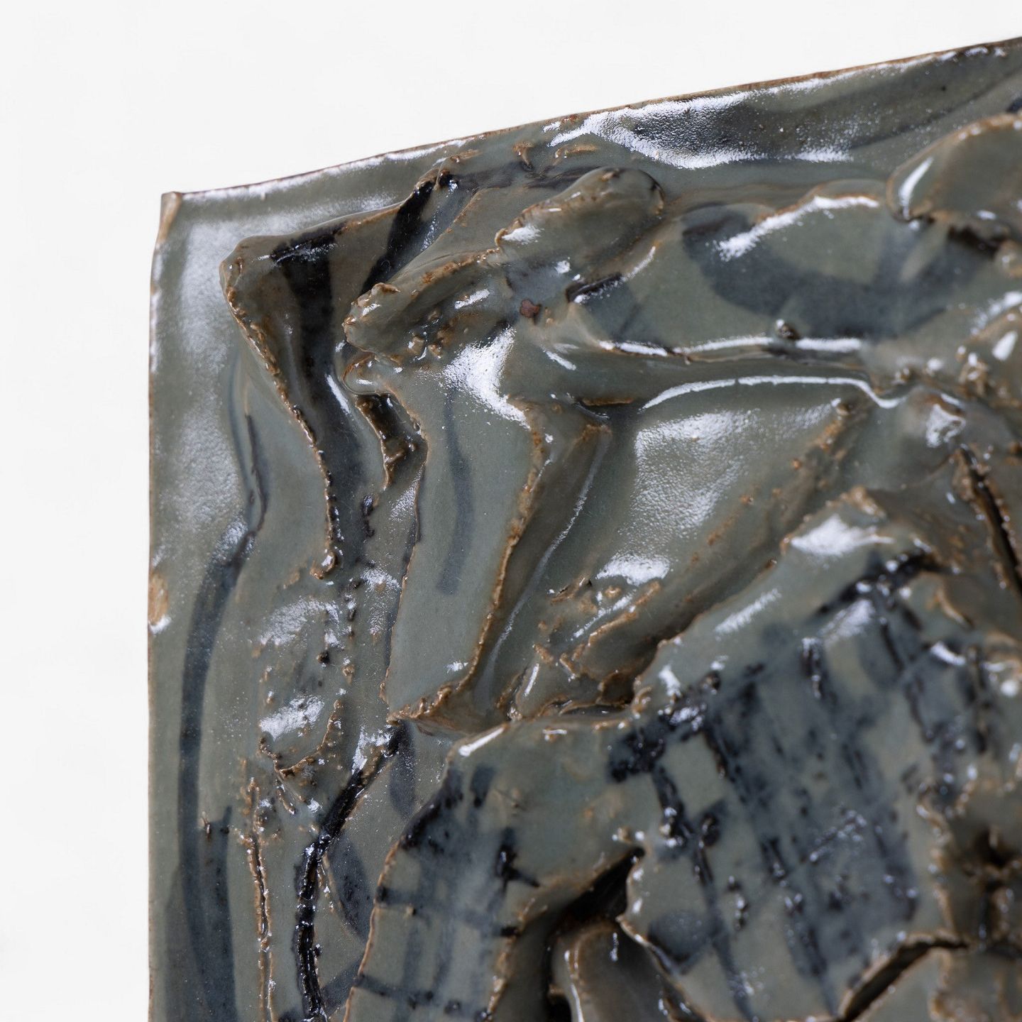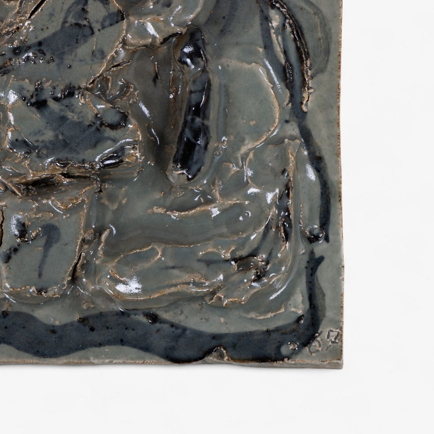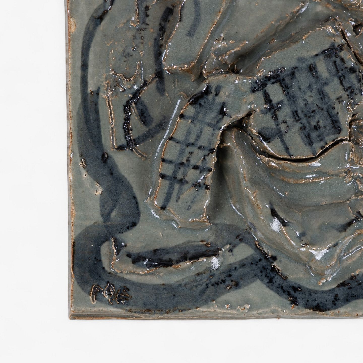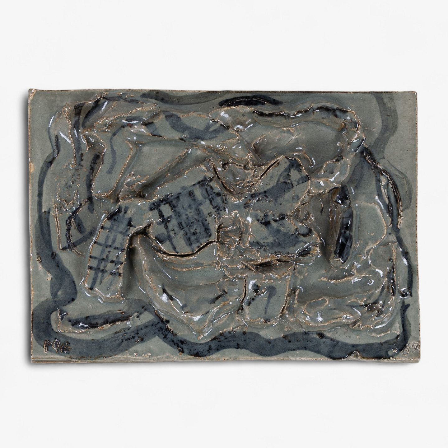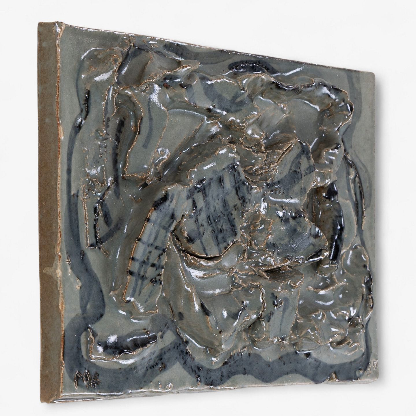 Mogens Andersen / Royal Copenhagen.Relief i stentøj med abstrakte former og grønlig glasur. Signeret, MA 67. Stemplet fra producent.