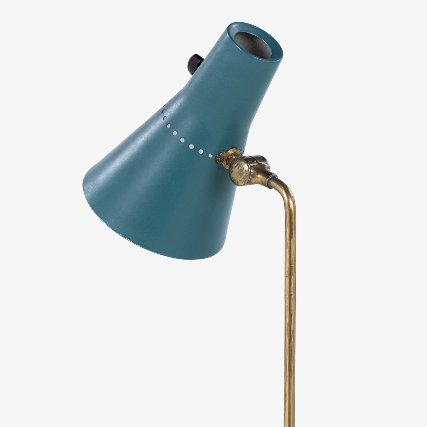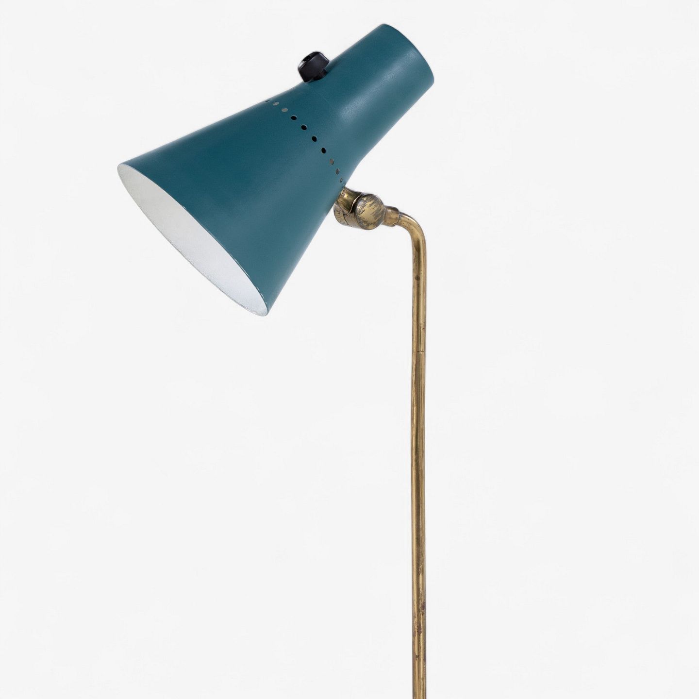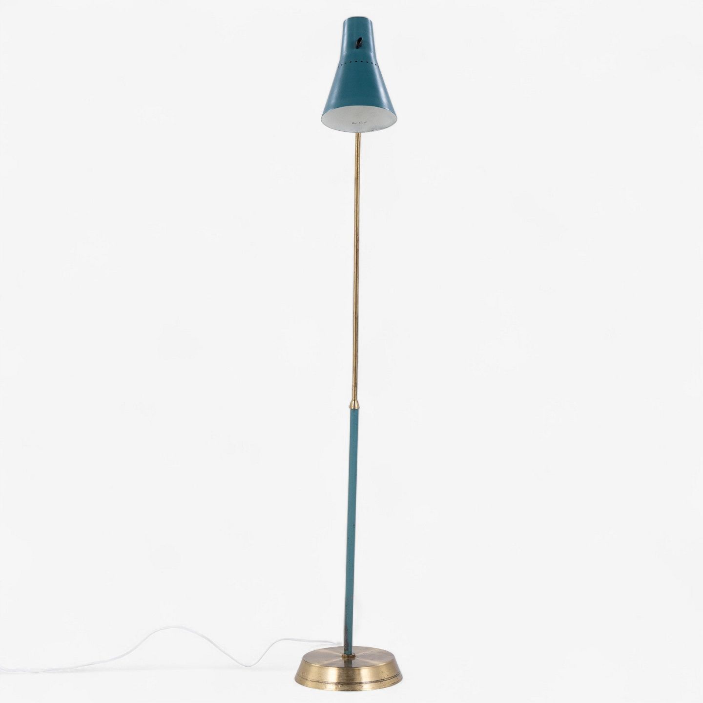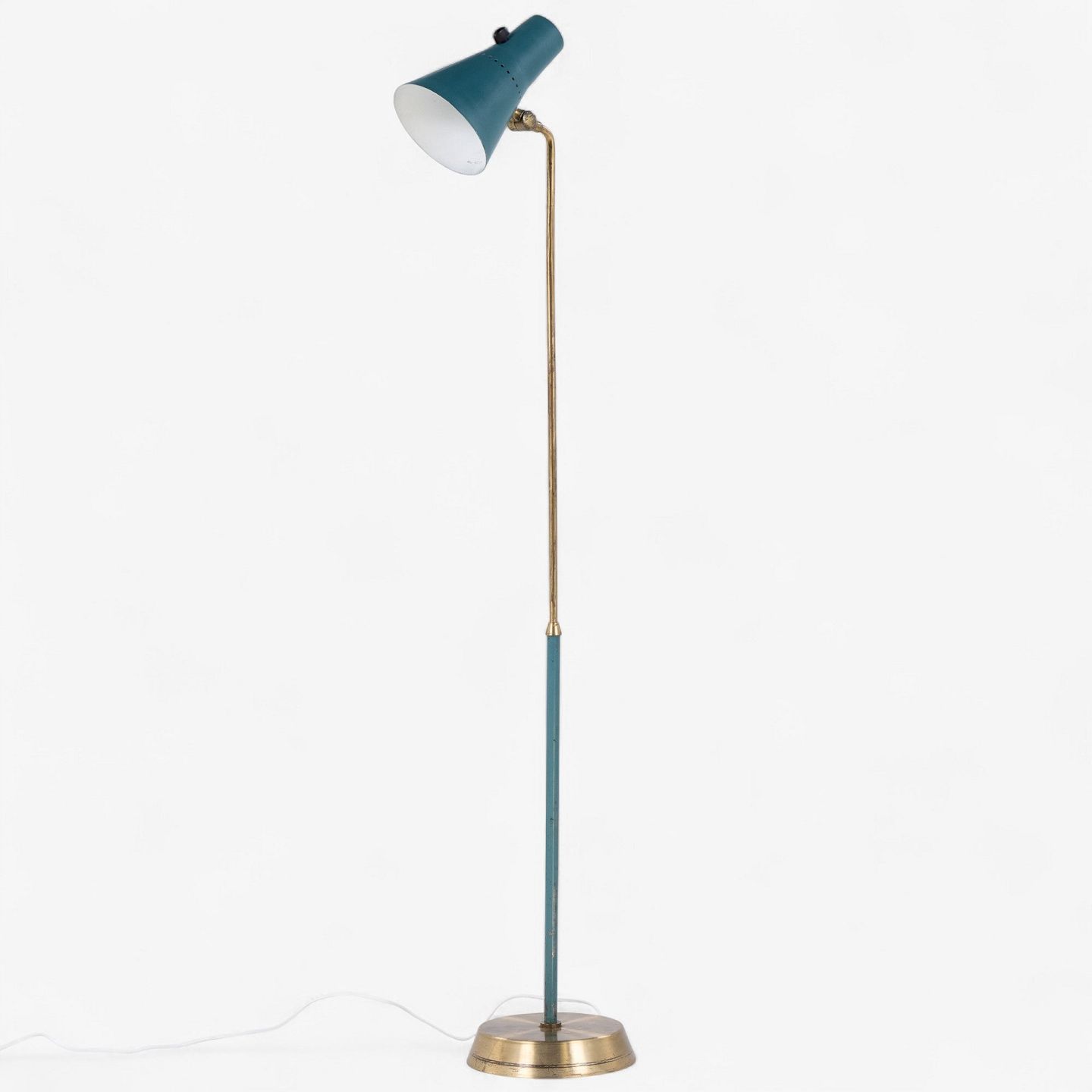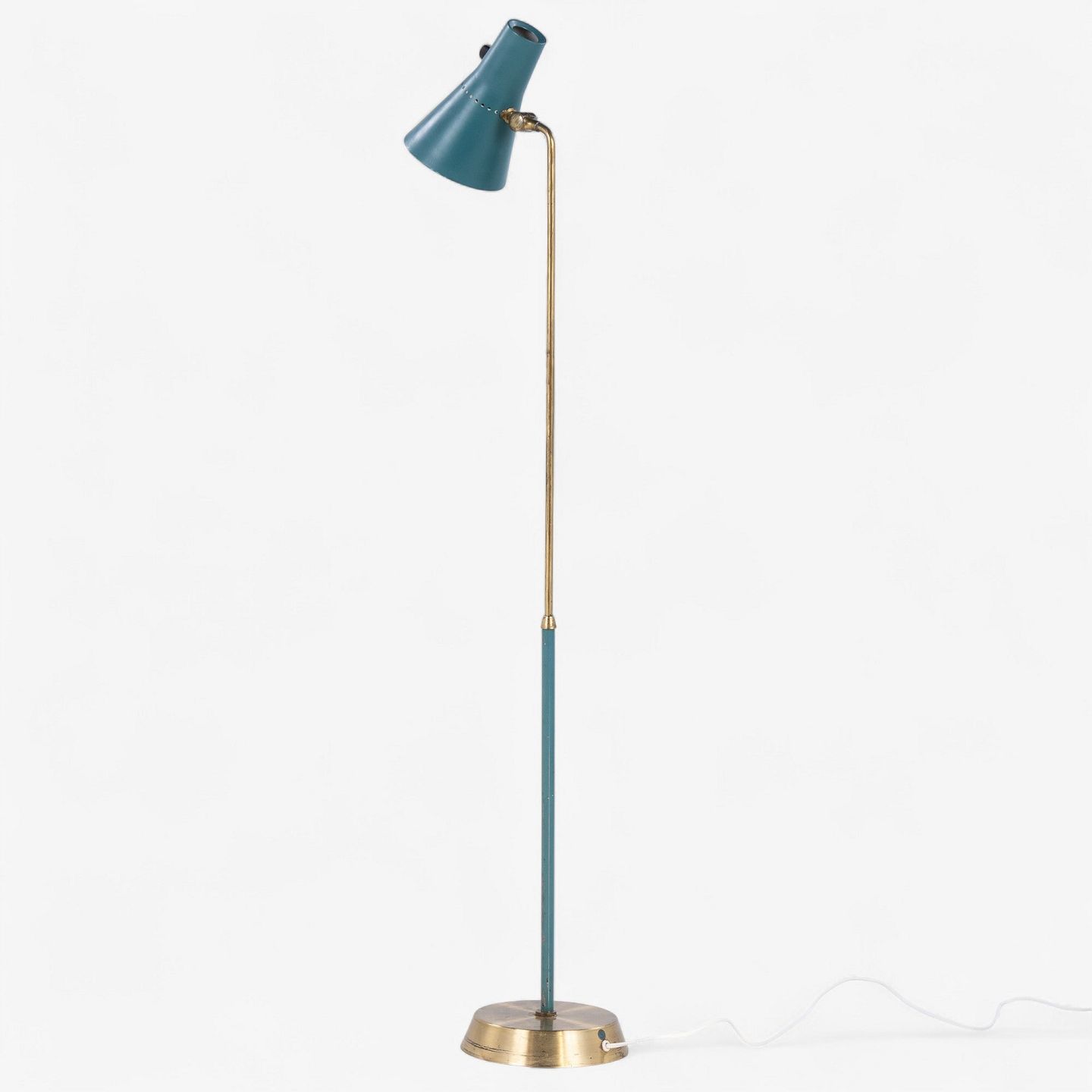 Hans-Agne Jakobsson / Karlskrona LampfabrikModel KLK 2851 - Gulvlampe i patineret messing og grønlakeret metal.