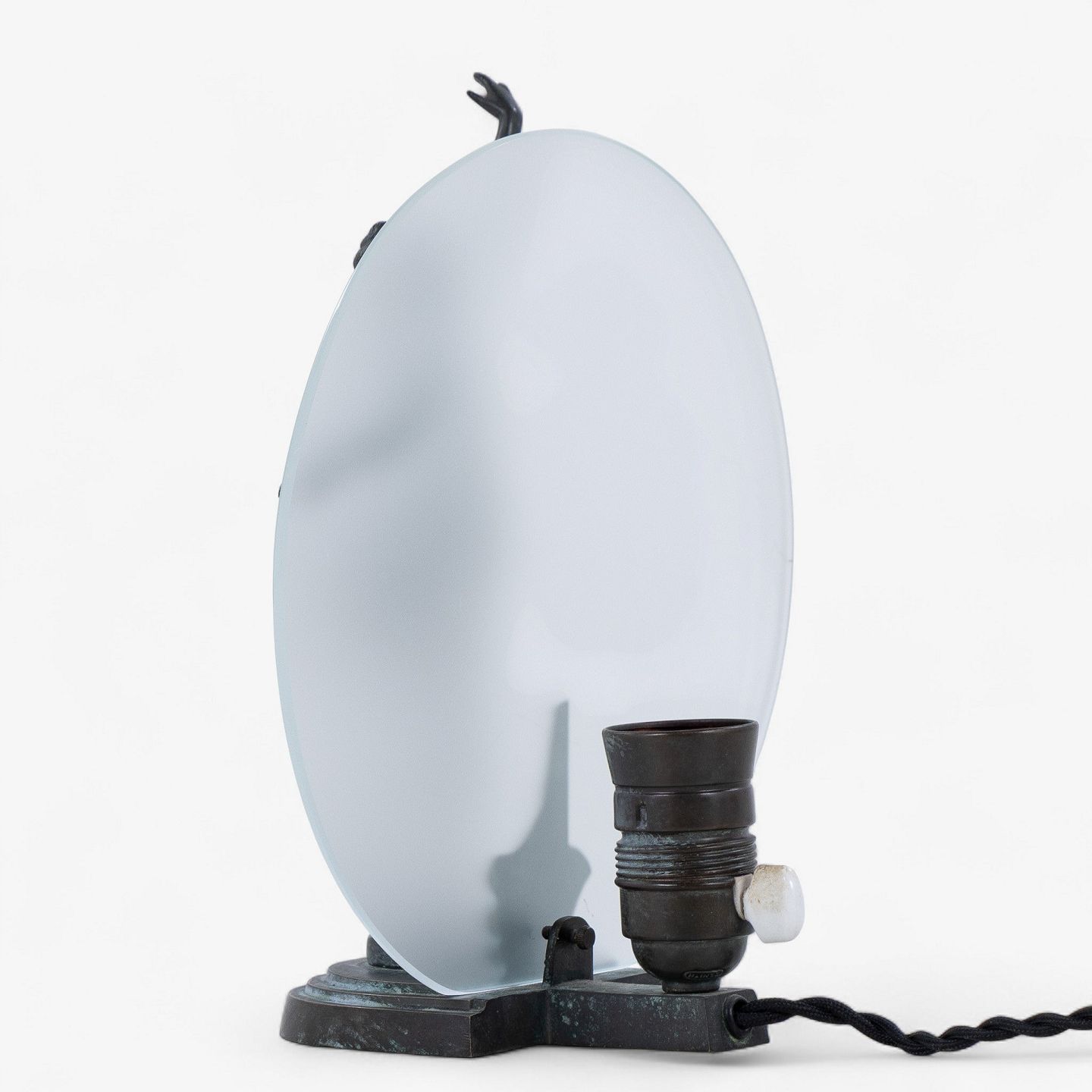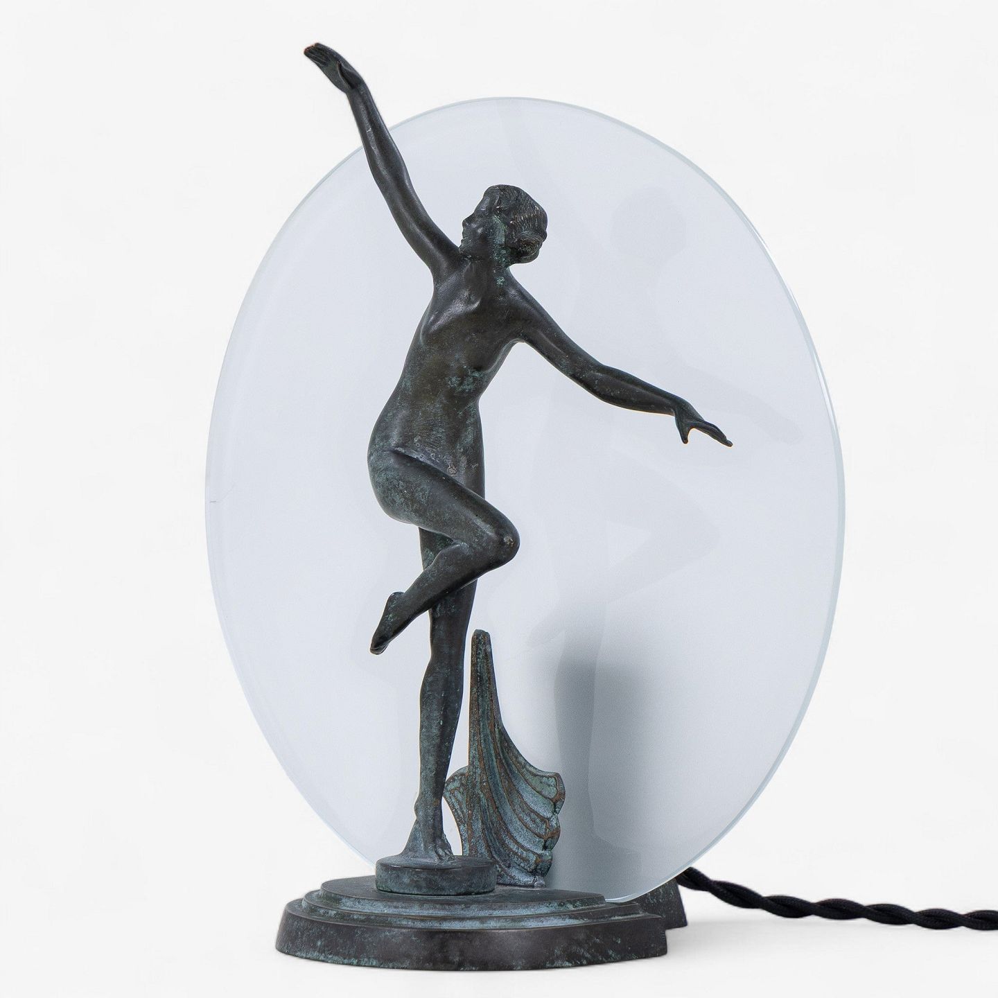 UkendtBordlampe med dansende kvinde i patineret bronze og glasskærm.