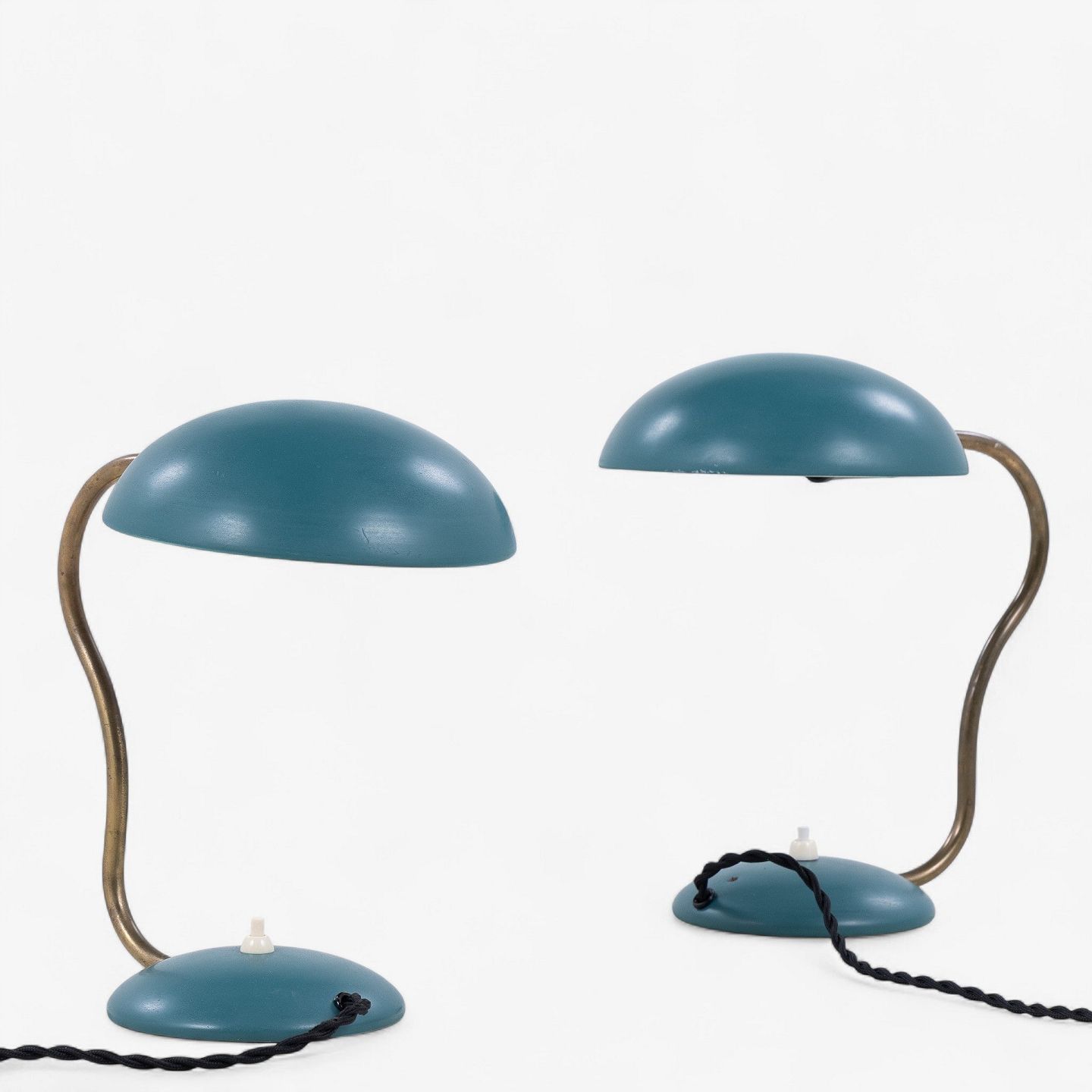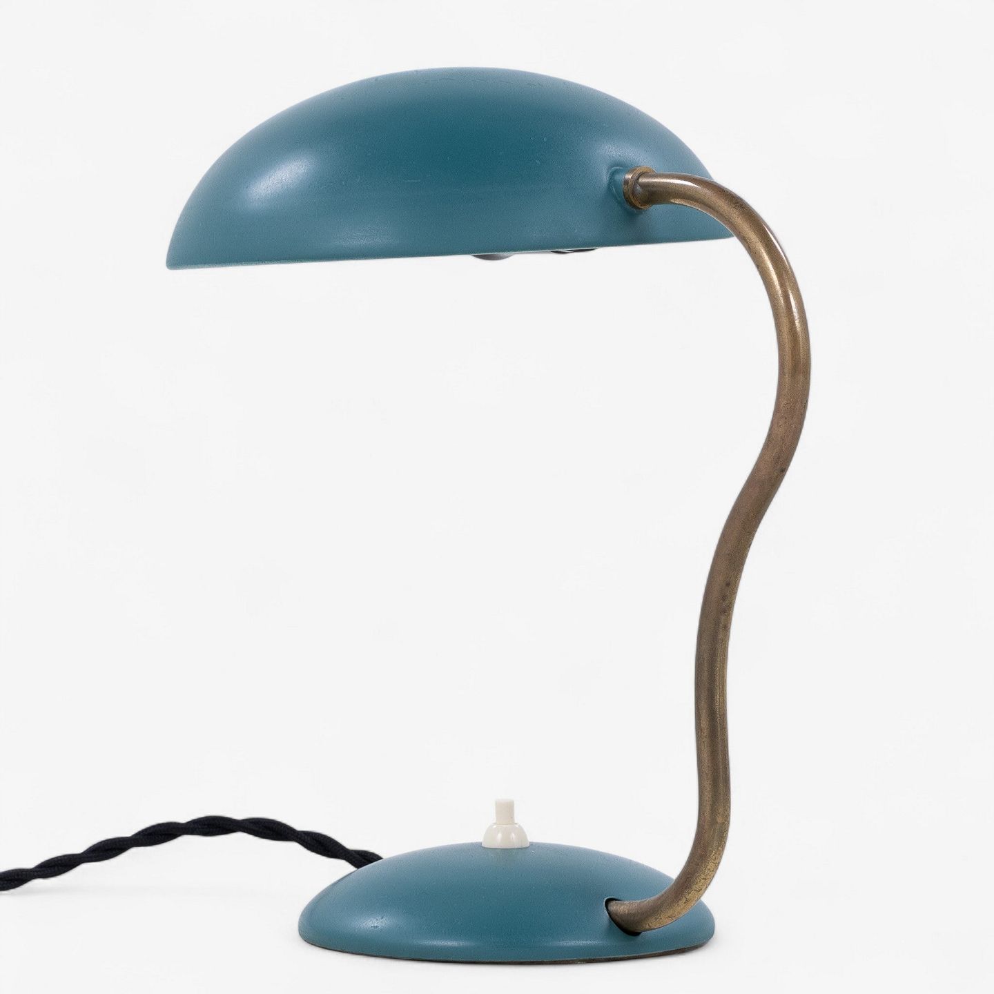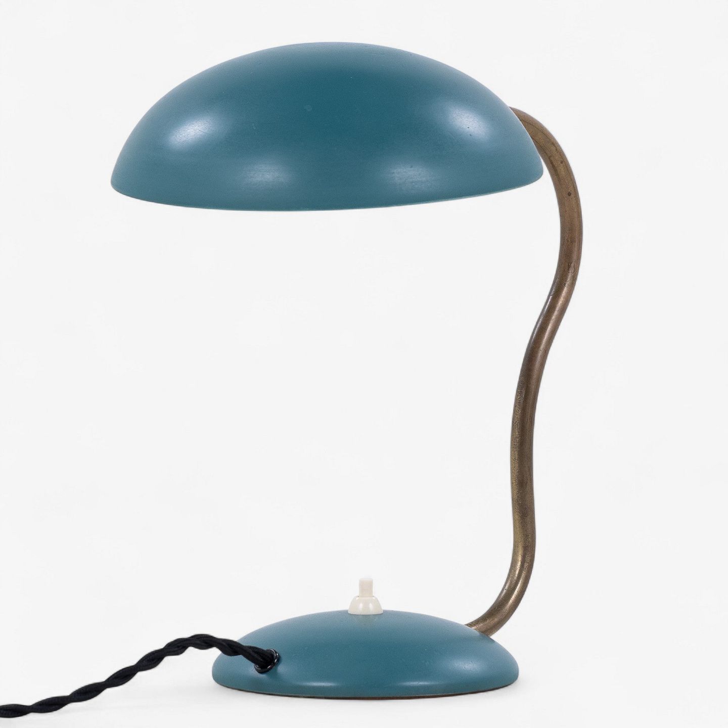 ASEAModel E1325 - Bordlampe i grønlakeret metal med justerbar arm i messing.