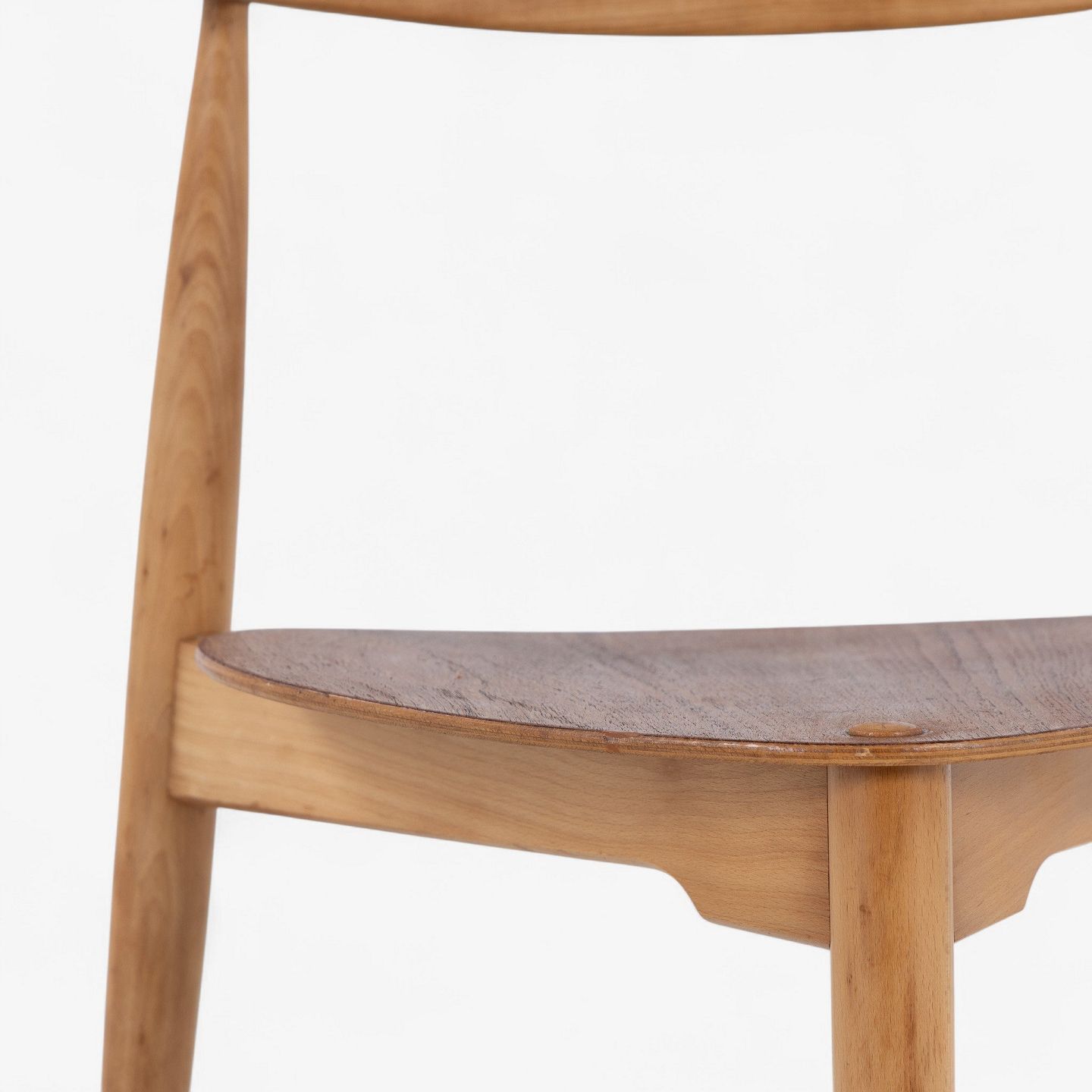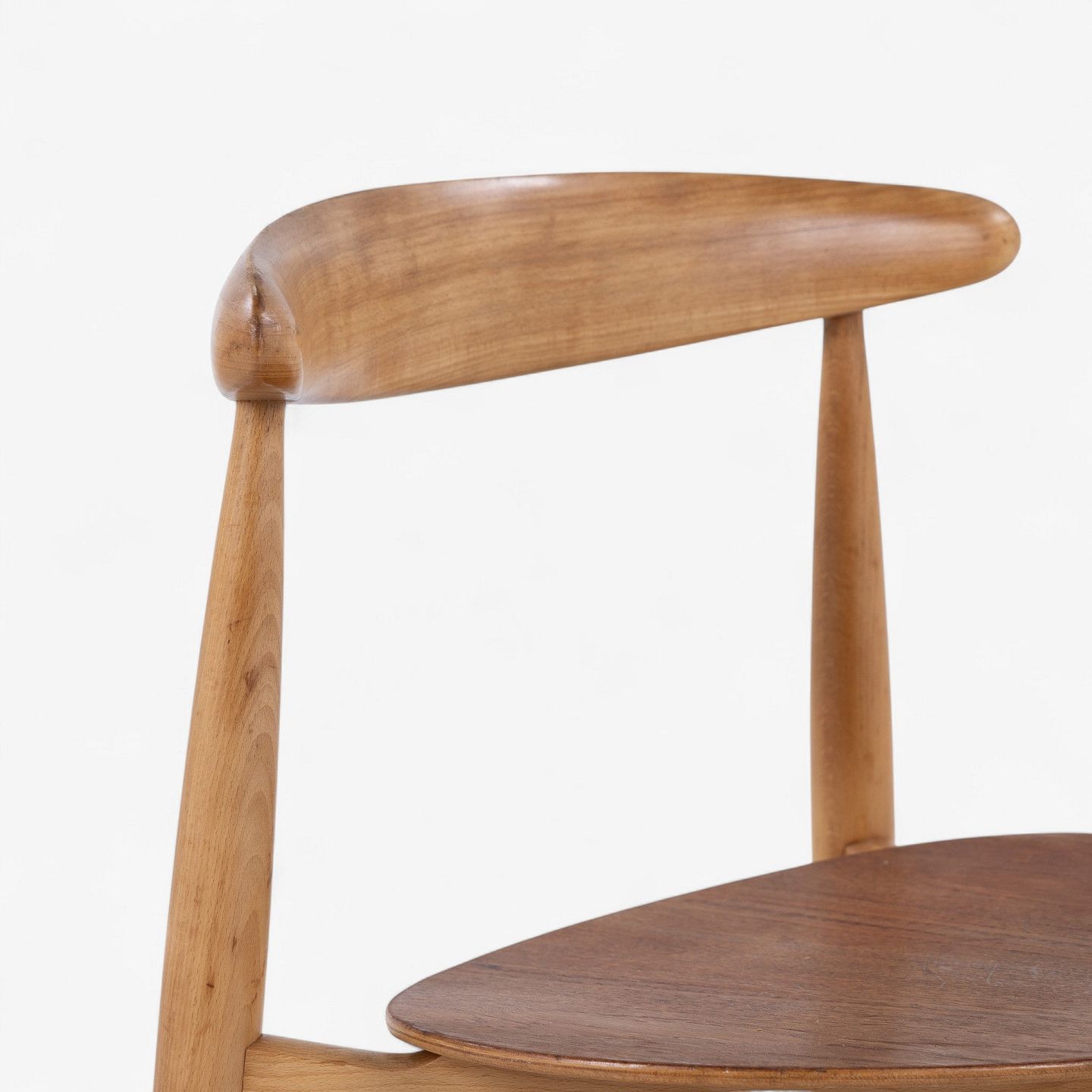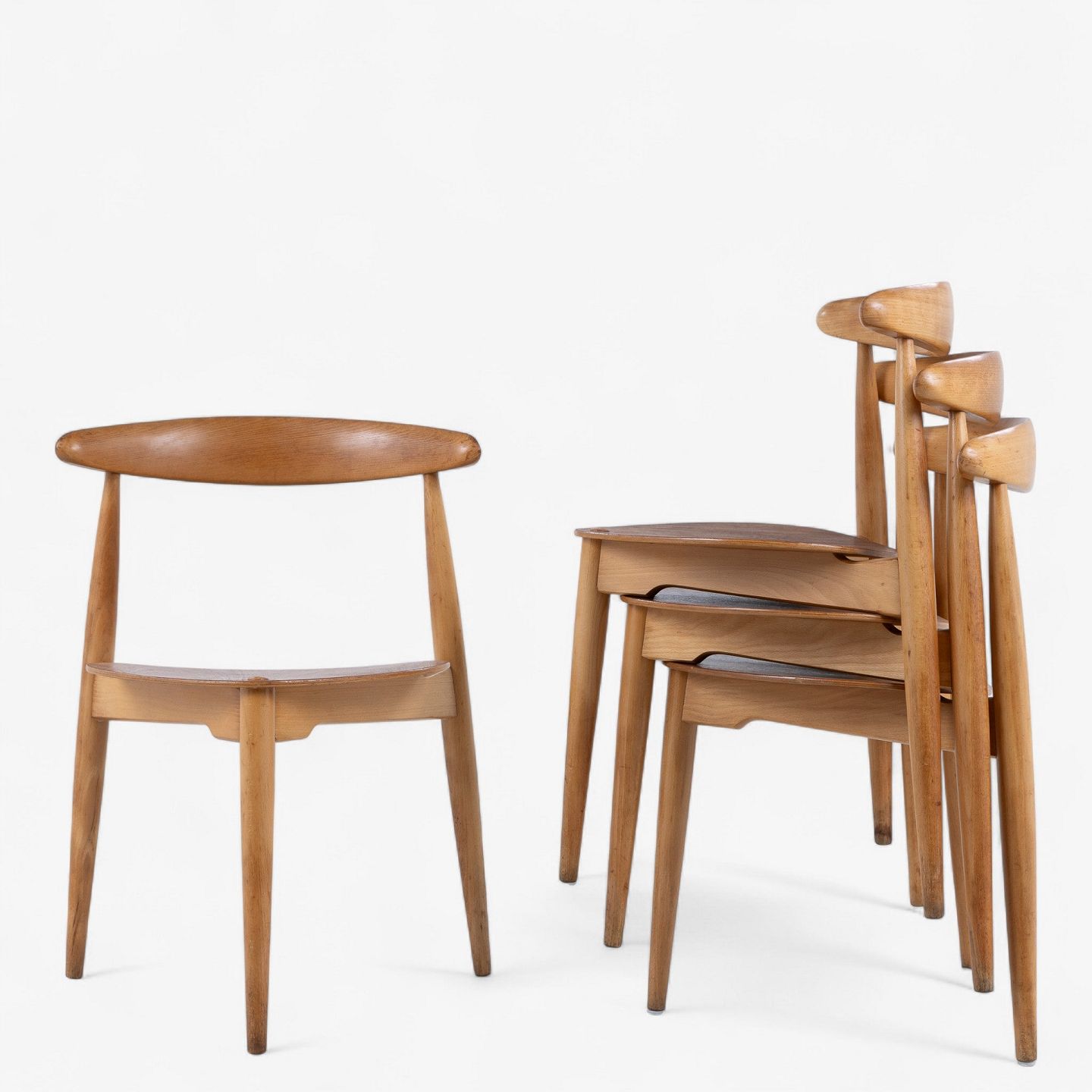 Hans J. Wegner / Fritz Hansen.FH 4130 - Sæt á 4 'Hjertestole' i massiv patineret bøg med sæde i teak. Formgivet 1952.