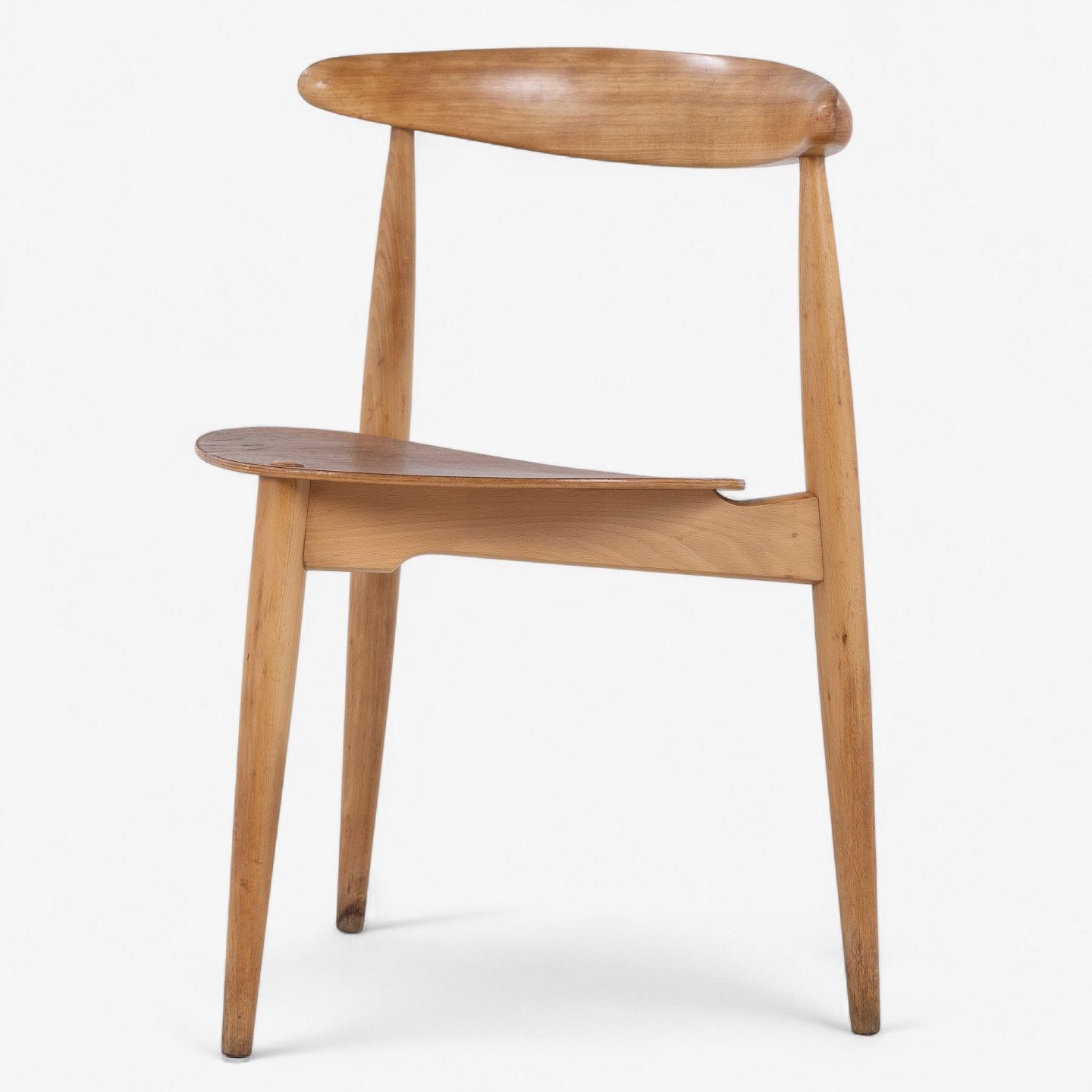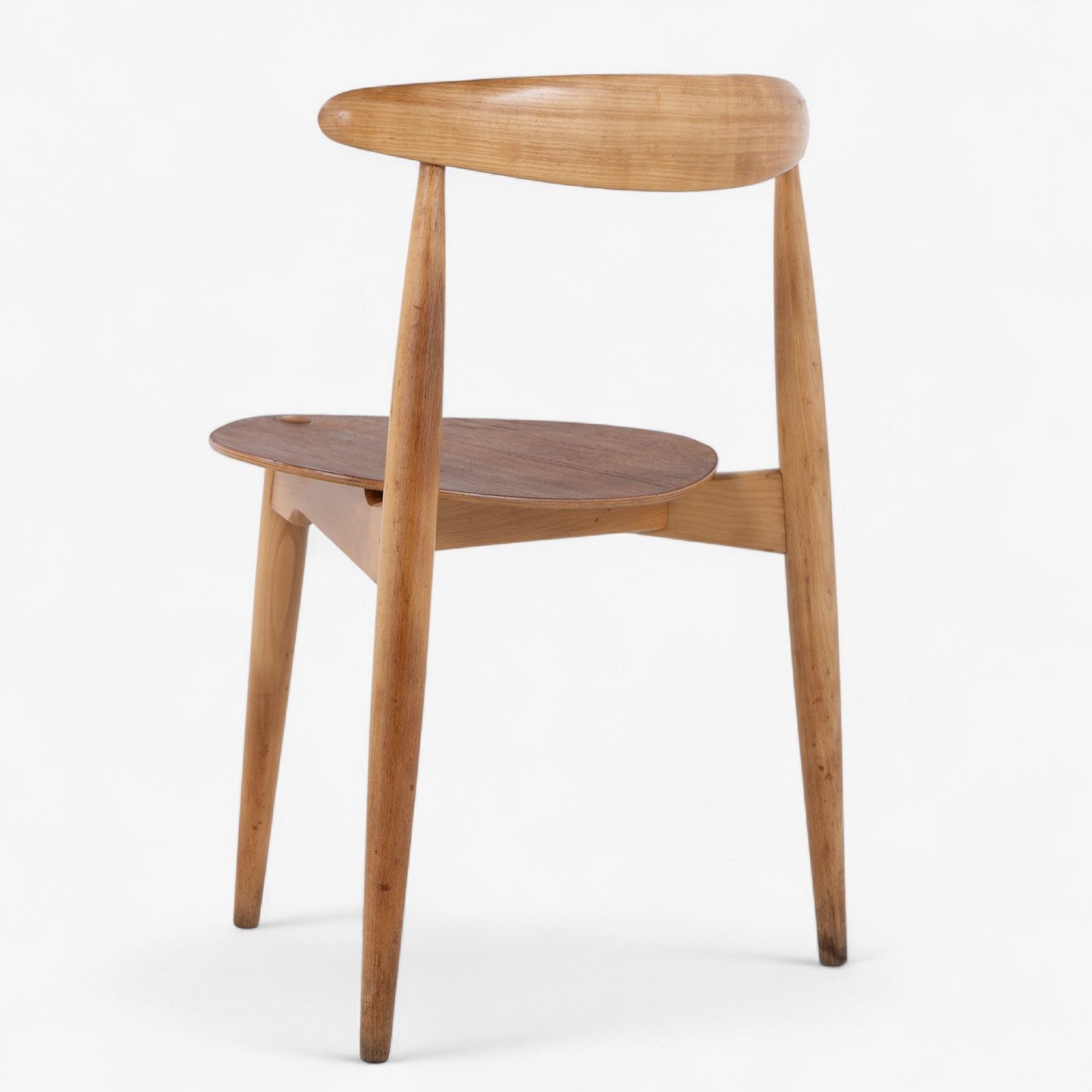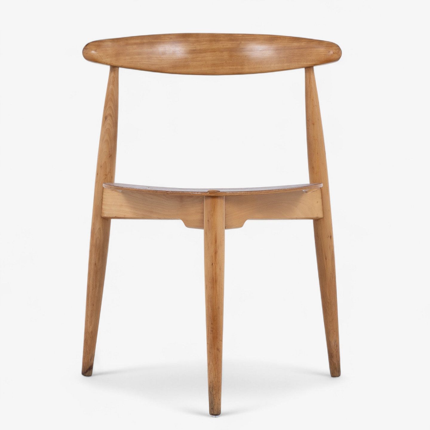 Hans J. Wegner / Fritz Hansen.FH 4130 - Sæt á 4 'Hjertestole' i massiv patineret bøg med sæde i teak. Formgivet 1952.
