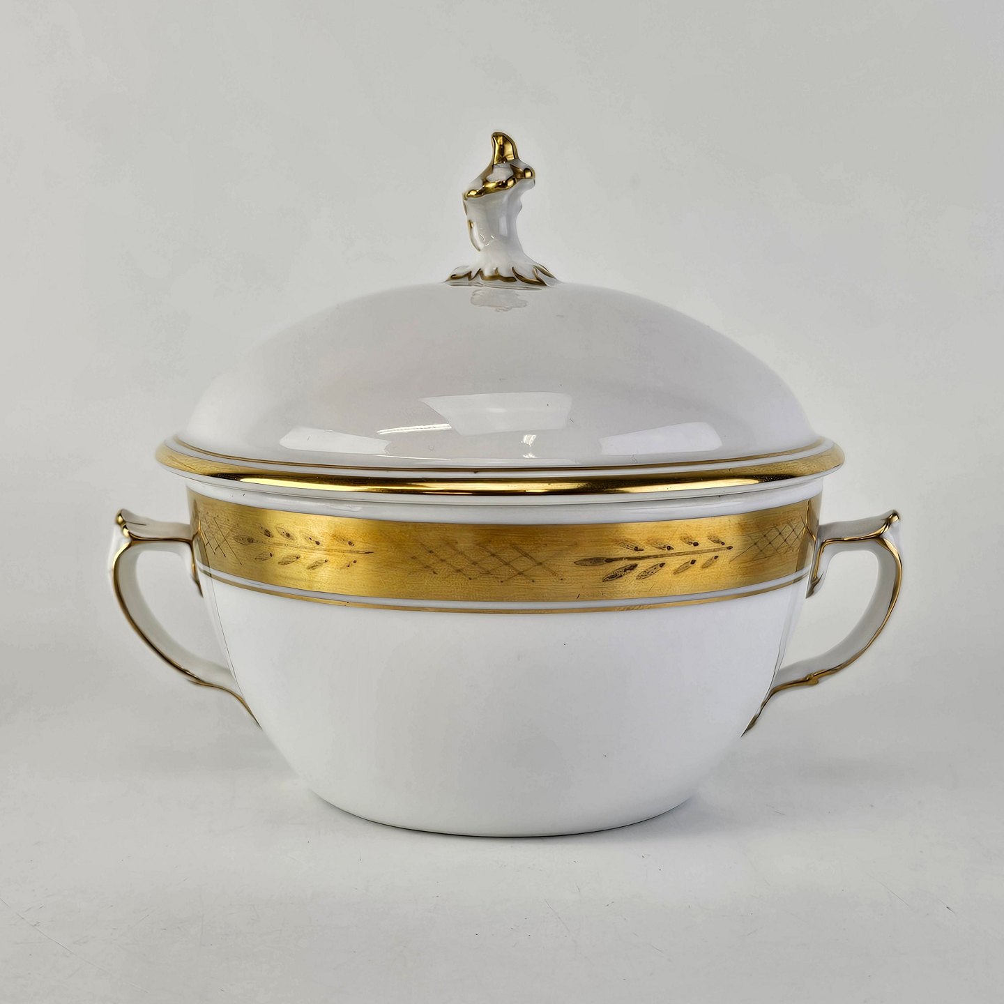 Stel nr. 607 er i hvidt porcelæn og har en guldkant med bladværk