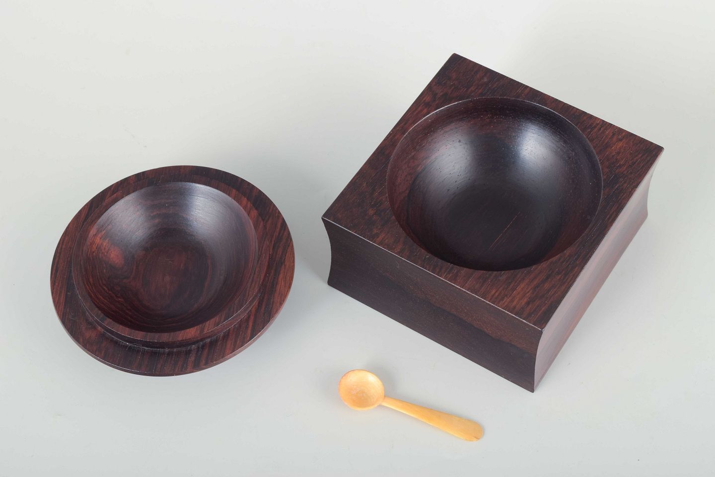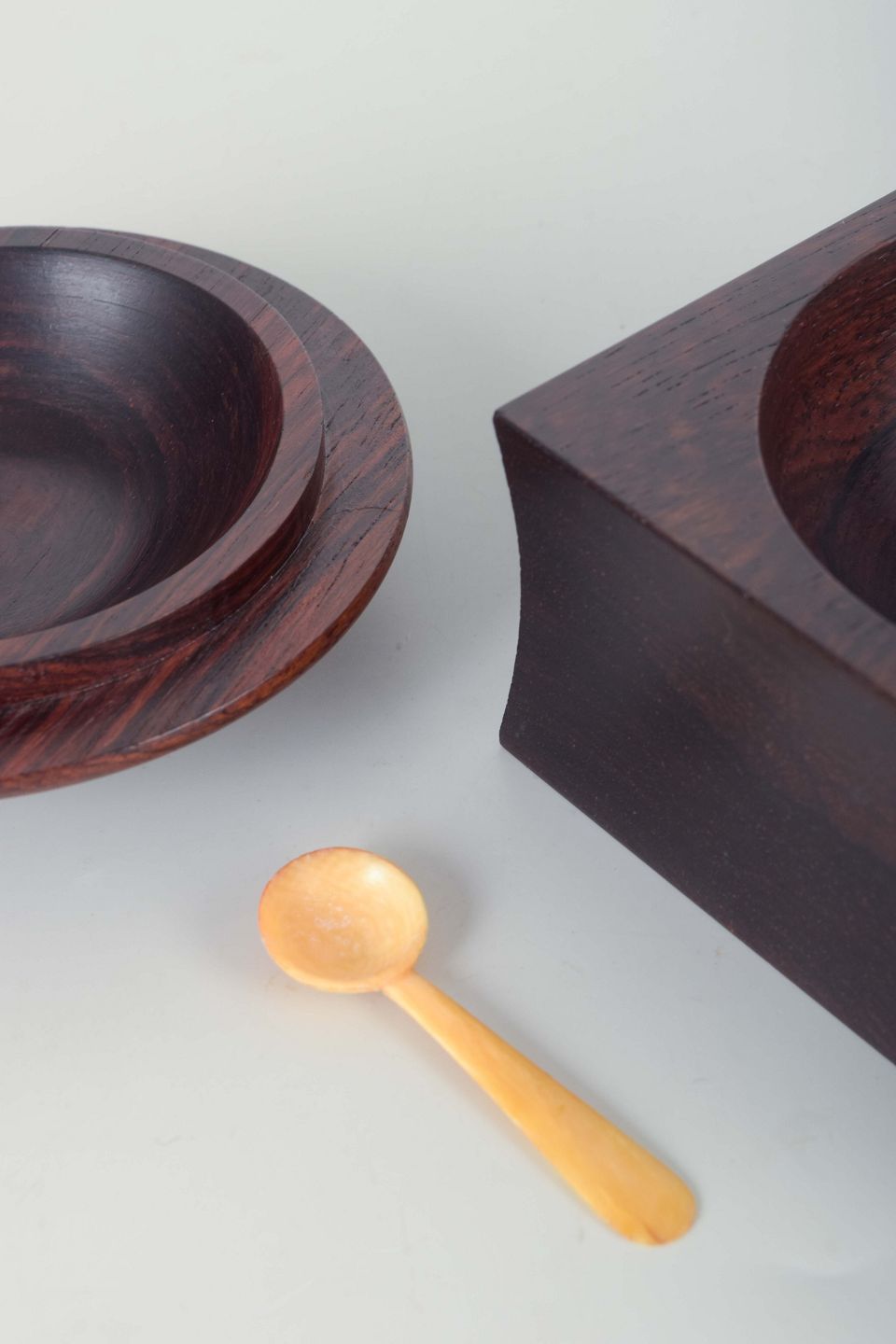 Dansk designEksotisk træ, saltkar med ske, 1960’erne.