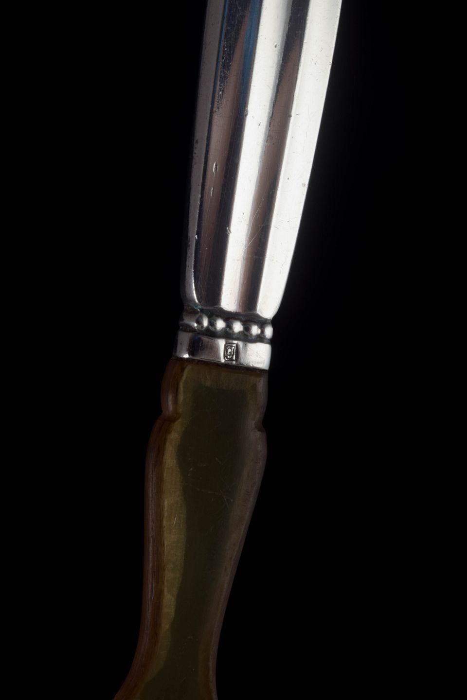Elegant sardingaffel i det klassiske “Konge / Acorn”-mønster, designet af Johan Rohde i 1915. Skaftet er udsmykket med det karakteristiske akantusblad og agernmotiv.