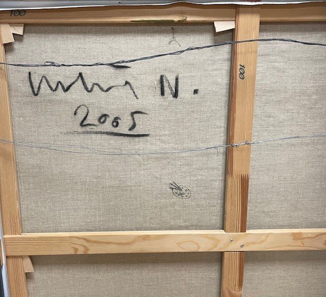 Komposition" Olie maleri på lærred i sølv svæveramme.