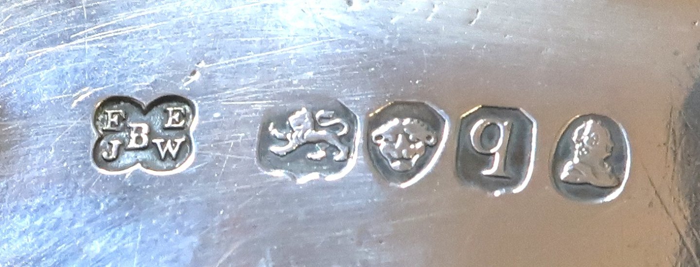 Englisches Sterling-Platmenage mit 7 Kristallkaraffen (925). Länge 19 cm. Höhe 20 cm. Hergestellt in London 1831. Händler
