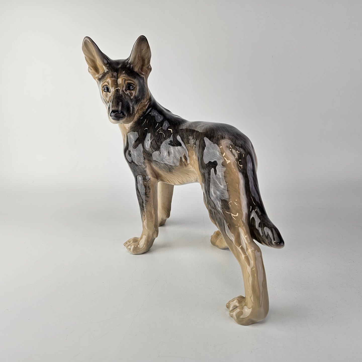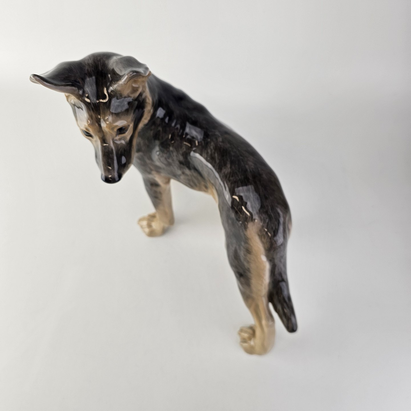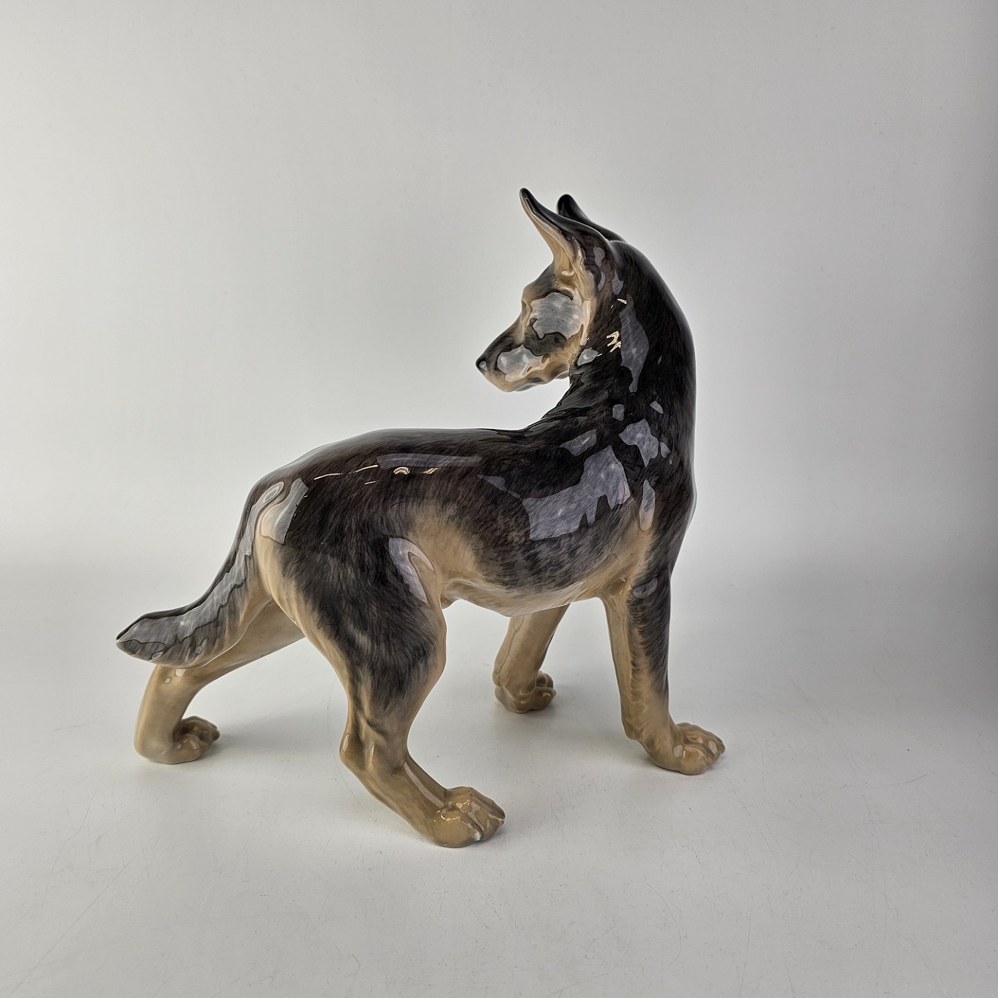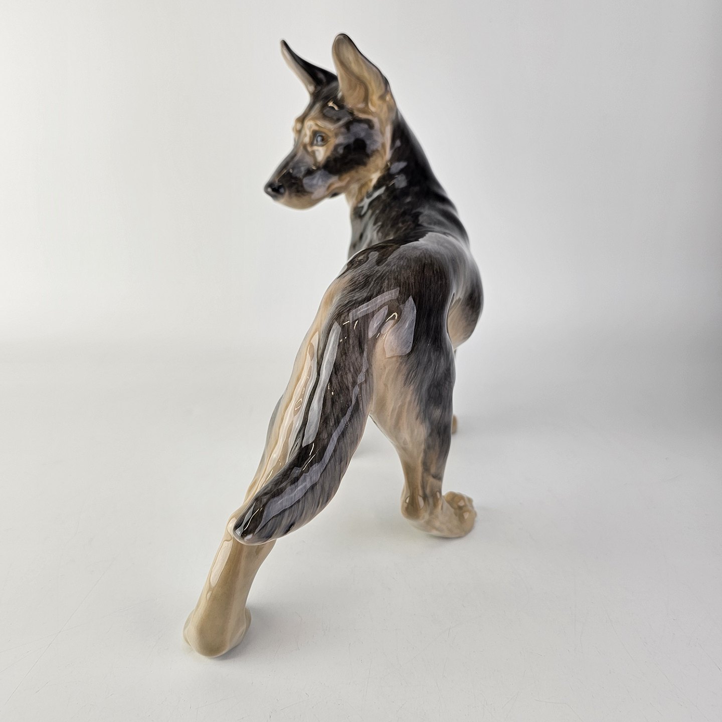 Figur i porcelæn med motiv af en stående schæferhund Nr. 2018