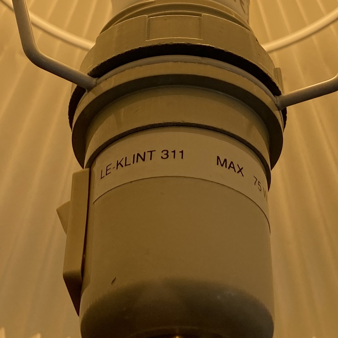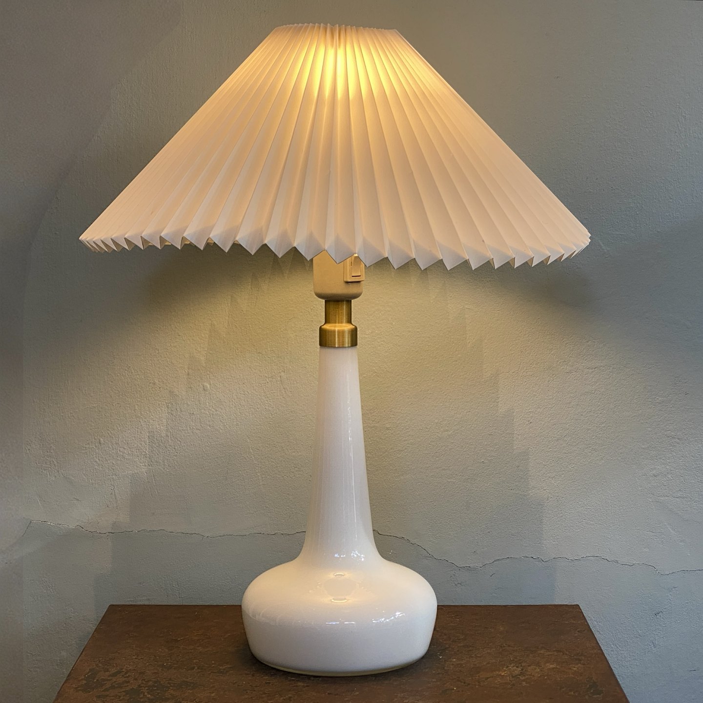 Le klint bordlampe model 311 med lampefod af hvid opalineglas.den viste lampe er solgt , men vi har flere dog uden skærm.H. 46,5 cm. Ø lampefod 14 cm.