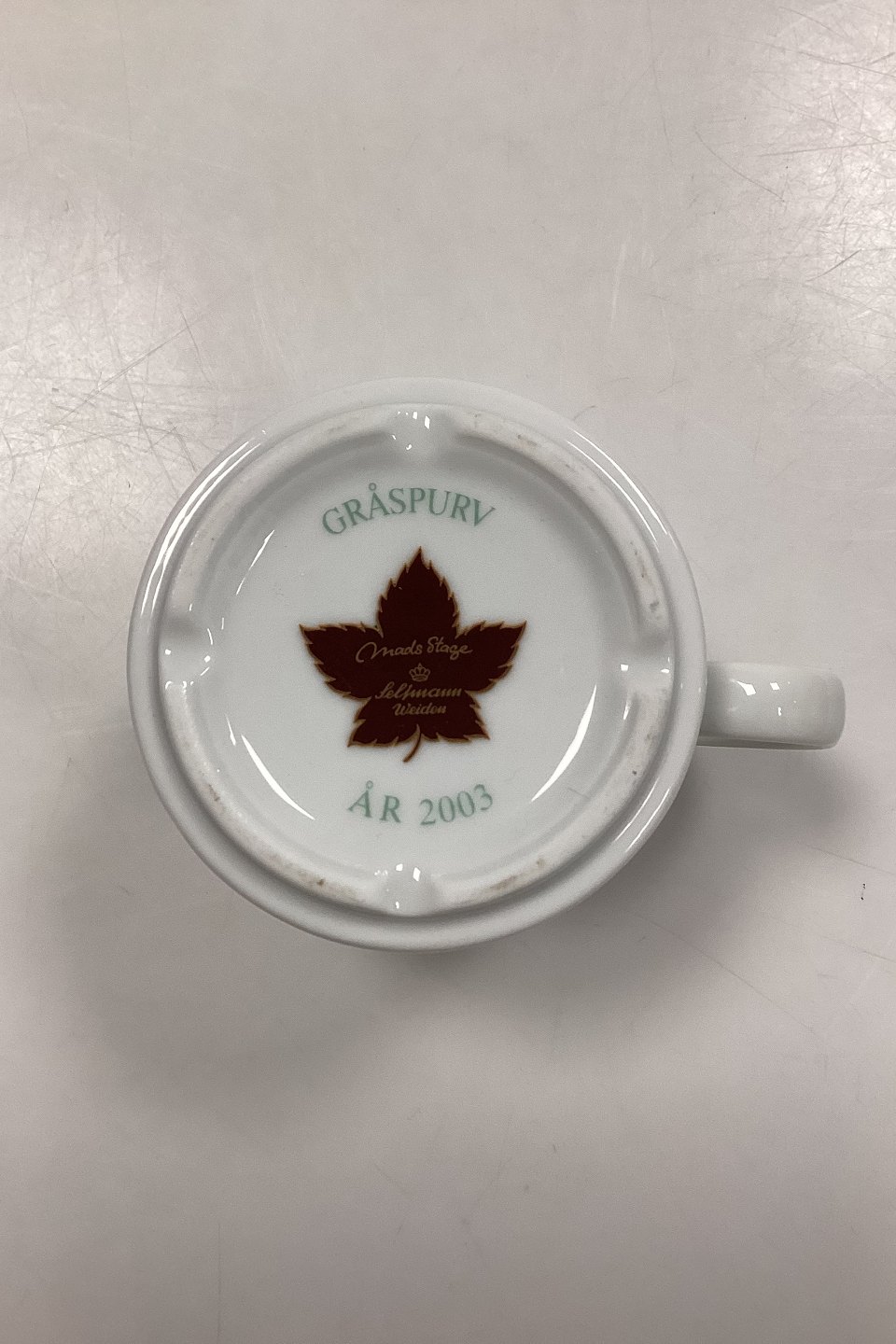 Mads Stage Årskrus - Gråspurv 2003. Producent: Seltmann Weiden.Måler 7,5 cm x 8,3 cm / 2,95 in. x 3,26 in.