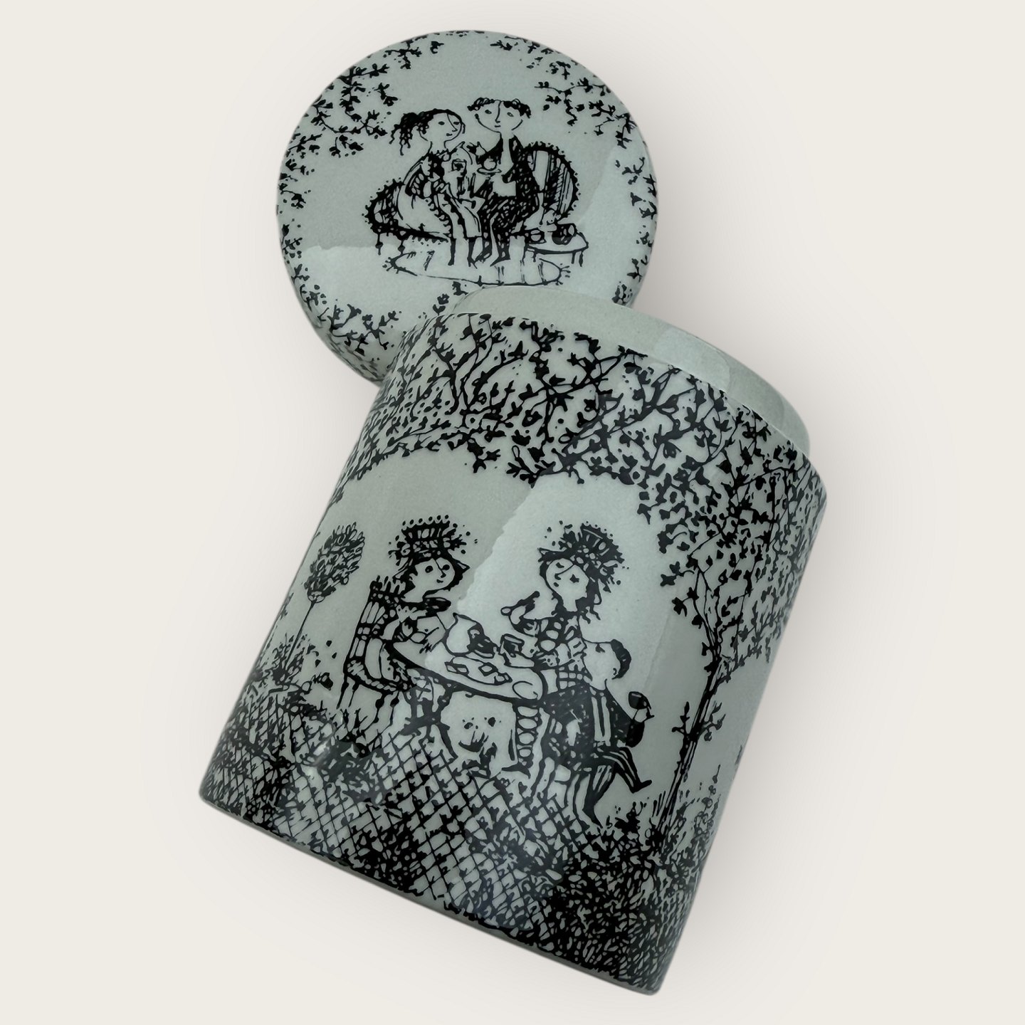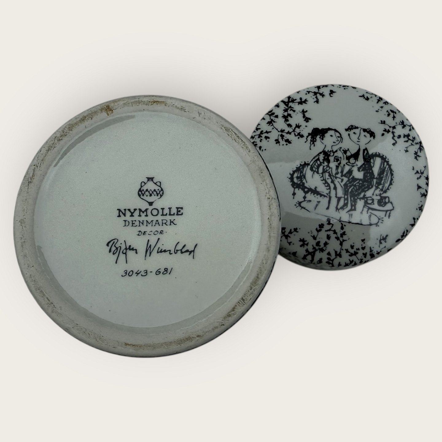 Bjørn Wiinblad, Neue Mühlenkeramik, Kleines Gefäß mit Deckel, Nr. 3043 - 681, Höhe 10 cm, Durchmesser 7,5 cm *guter Zustand*Lager: 1