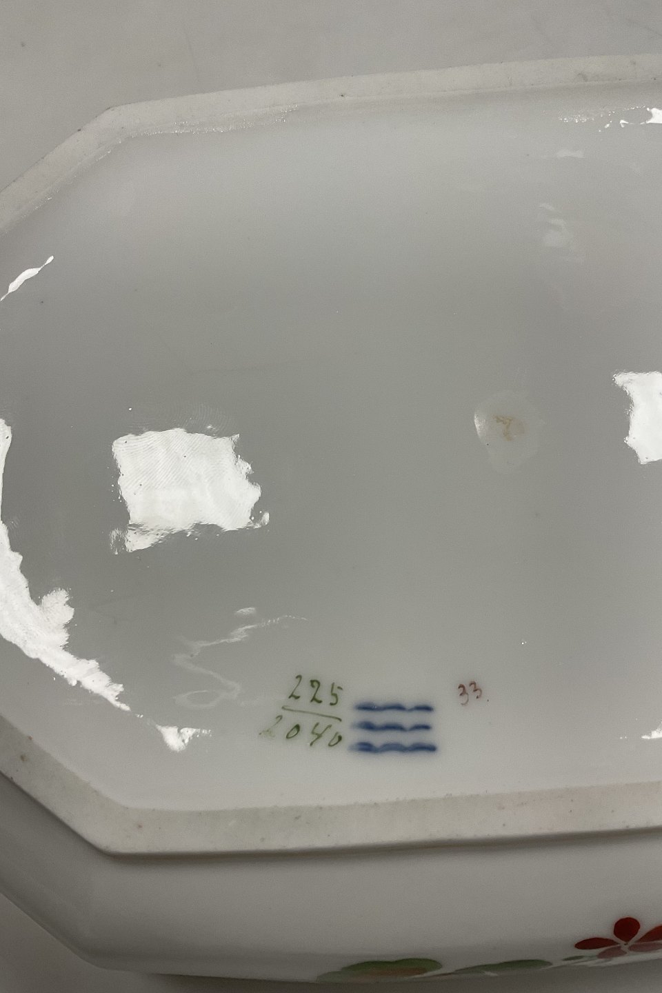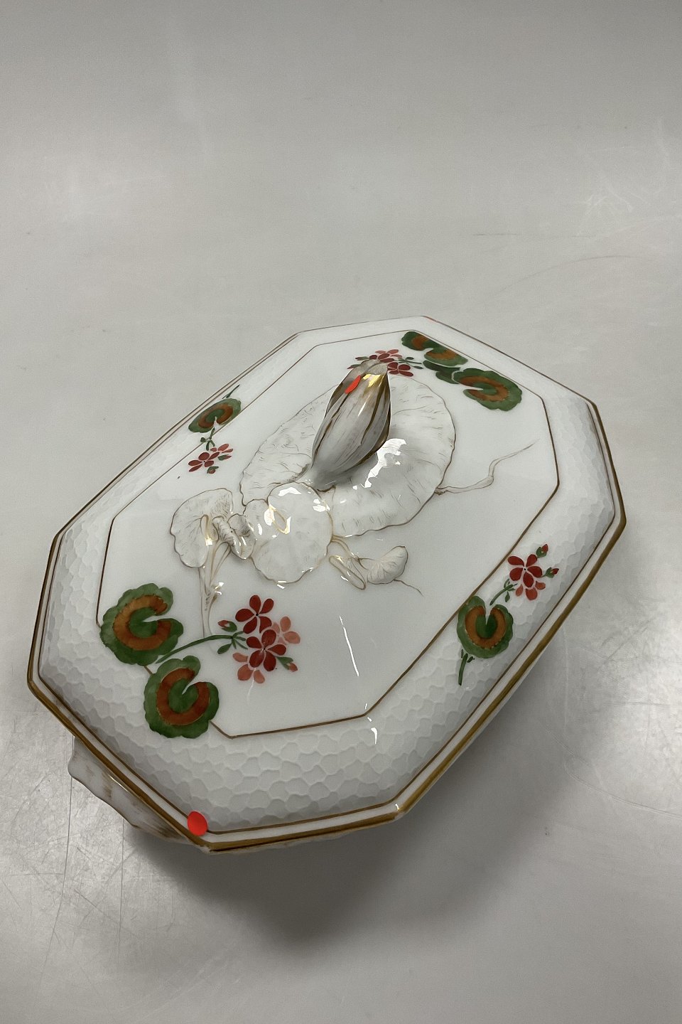 Royal Copenhagen Art Nouveau Stel No. 225 Pelargonie Terrin No. 2038 / 2040Måler 27cm x 18cm / 10.63 inch x 7.09 inch