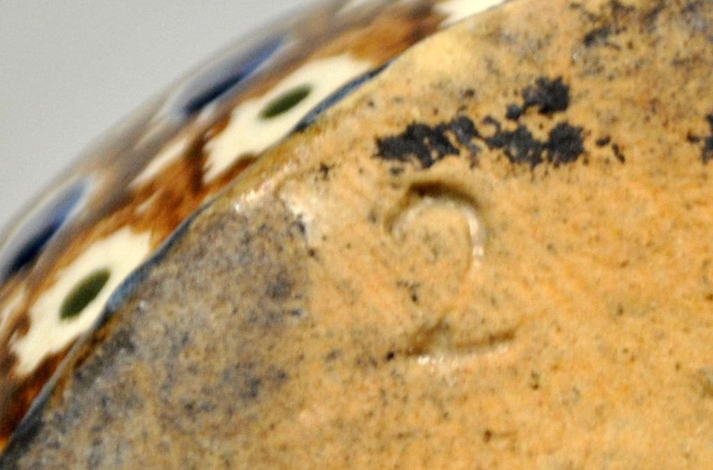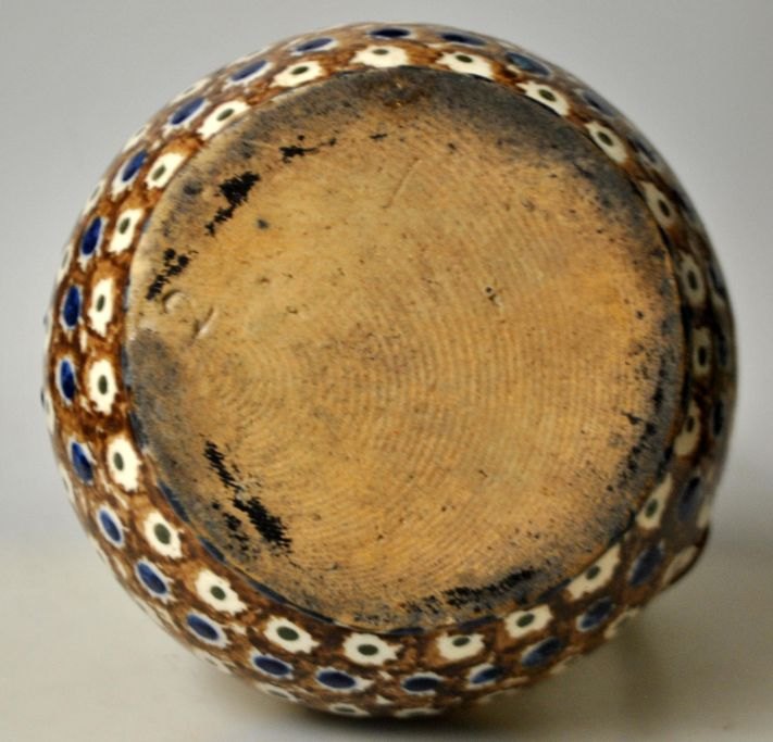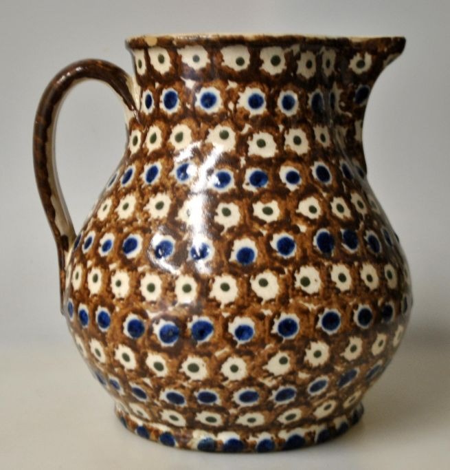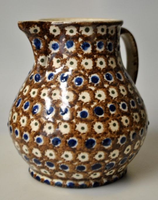 Antiker dänischer Tonkanne, 19. Jahrhundert. Roter Ton mit brauner, blauer und grüner Glasur. H.: 18 cm.Bestellnummer: 28403