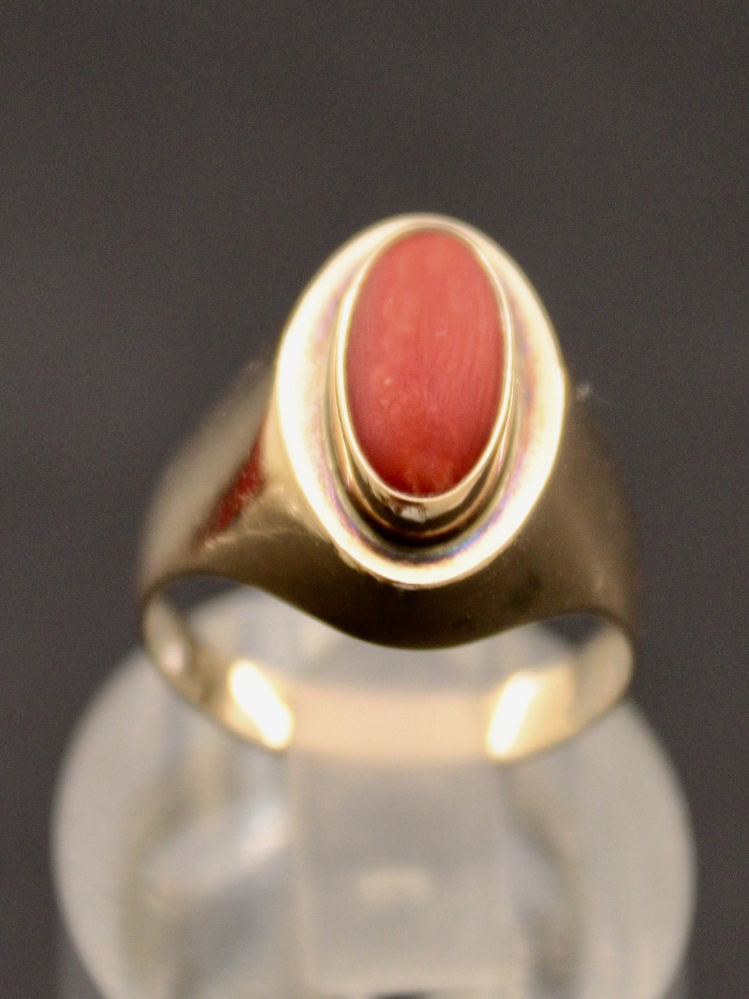 8 karat guld ring størrelse 57 med koral fra guldsmed Knud Lind Aarhus emne nr. 622993