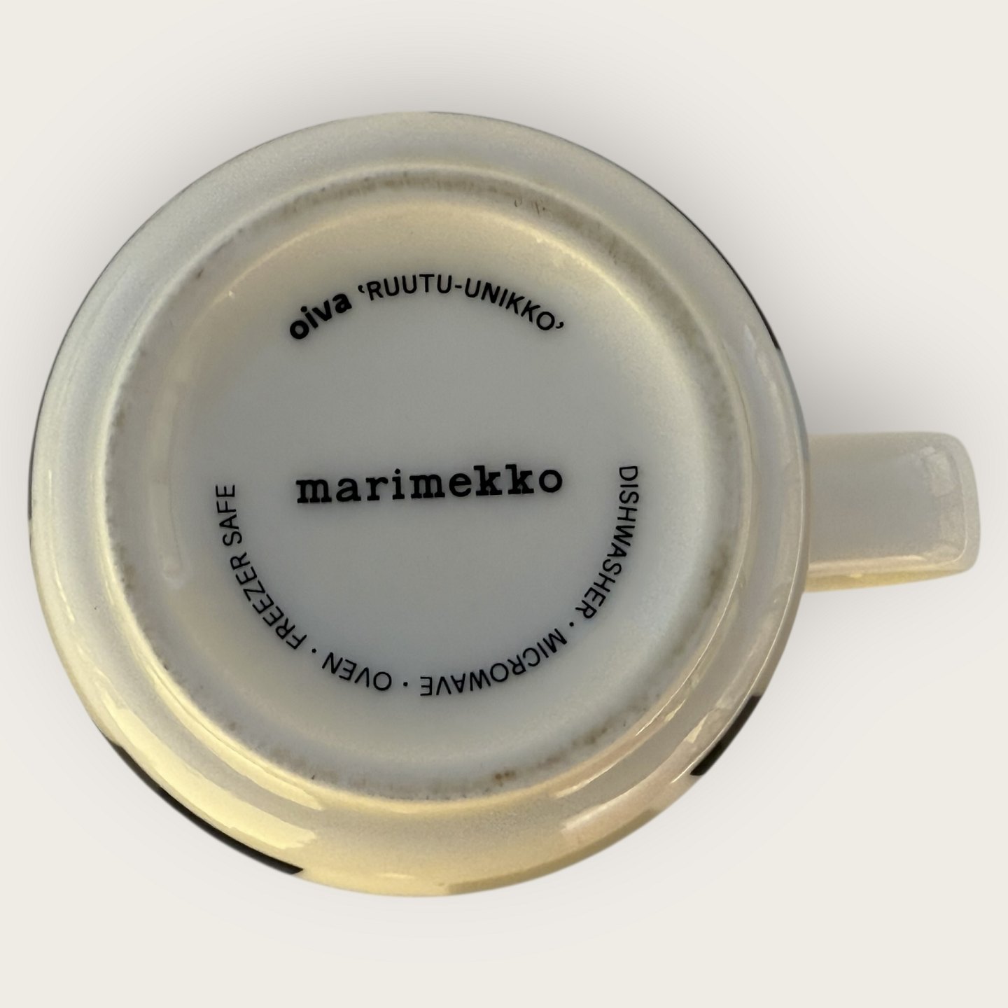 Marimekko-Becher mit Streifen, Oiva Ruutu-Unikko, Höhe 9,5 cm, Durchmesser 8 cm *perfekter Zustand*Lager: 2