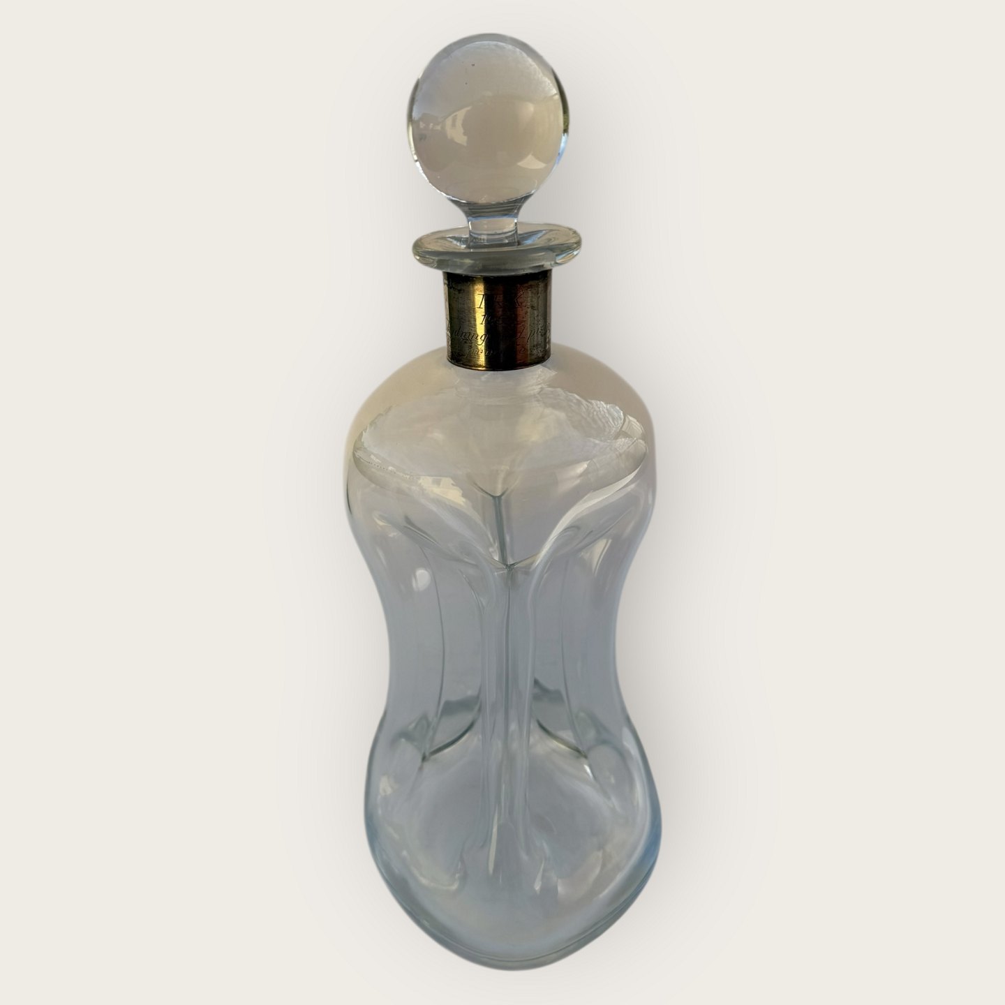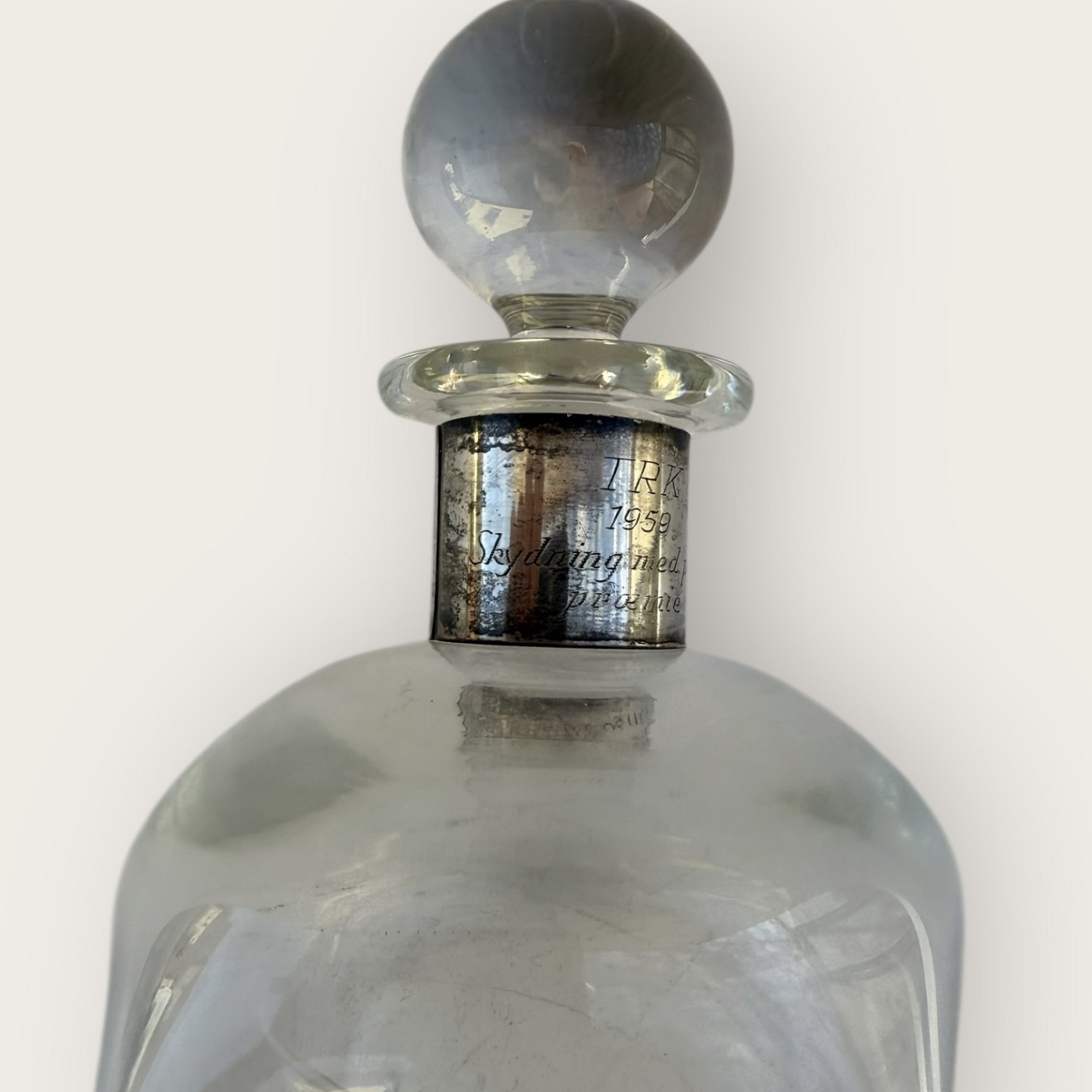 Große Klirrflasche mit Sterlingsilbermontierung von E. Dragsted, graviert: Preisschießen mit Pistole 1959, Höhe 32cm *guter Zustand*Lager: 1