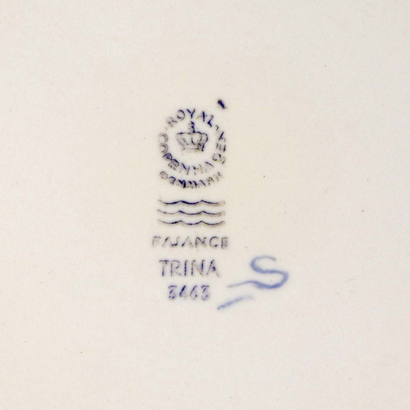 Frokosttallerken i kongelig fajance fra stellet Blå Trina. Nr. 3463Producent Royal Copenhagen