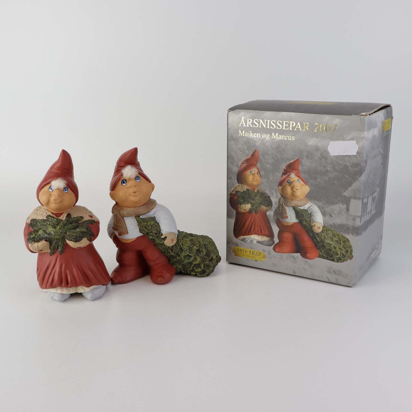 Figursæt med motiv Maiken og Marcus, som er årets nissepar fra 2007 fra serien Klarborg jul. Figurene kommer med original boks.Design Etly Klarborg