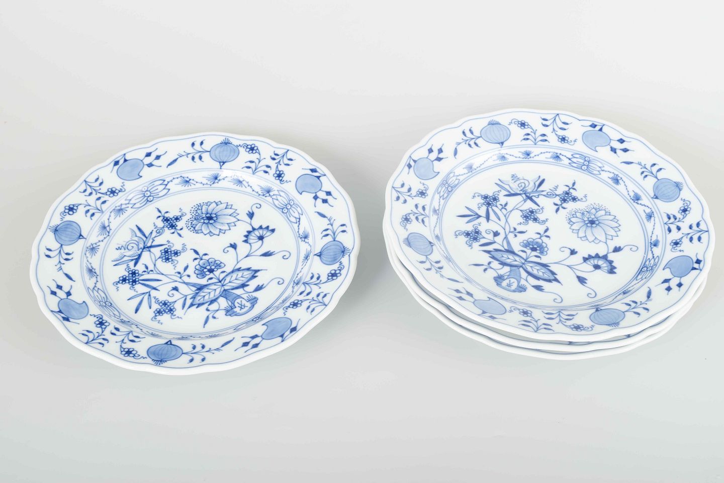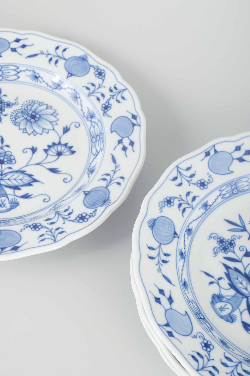 Meissen4 middagstallerkener, “Løgmønstret”, midten af 1900-tallet.