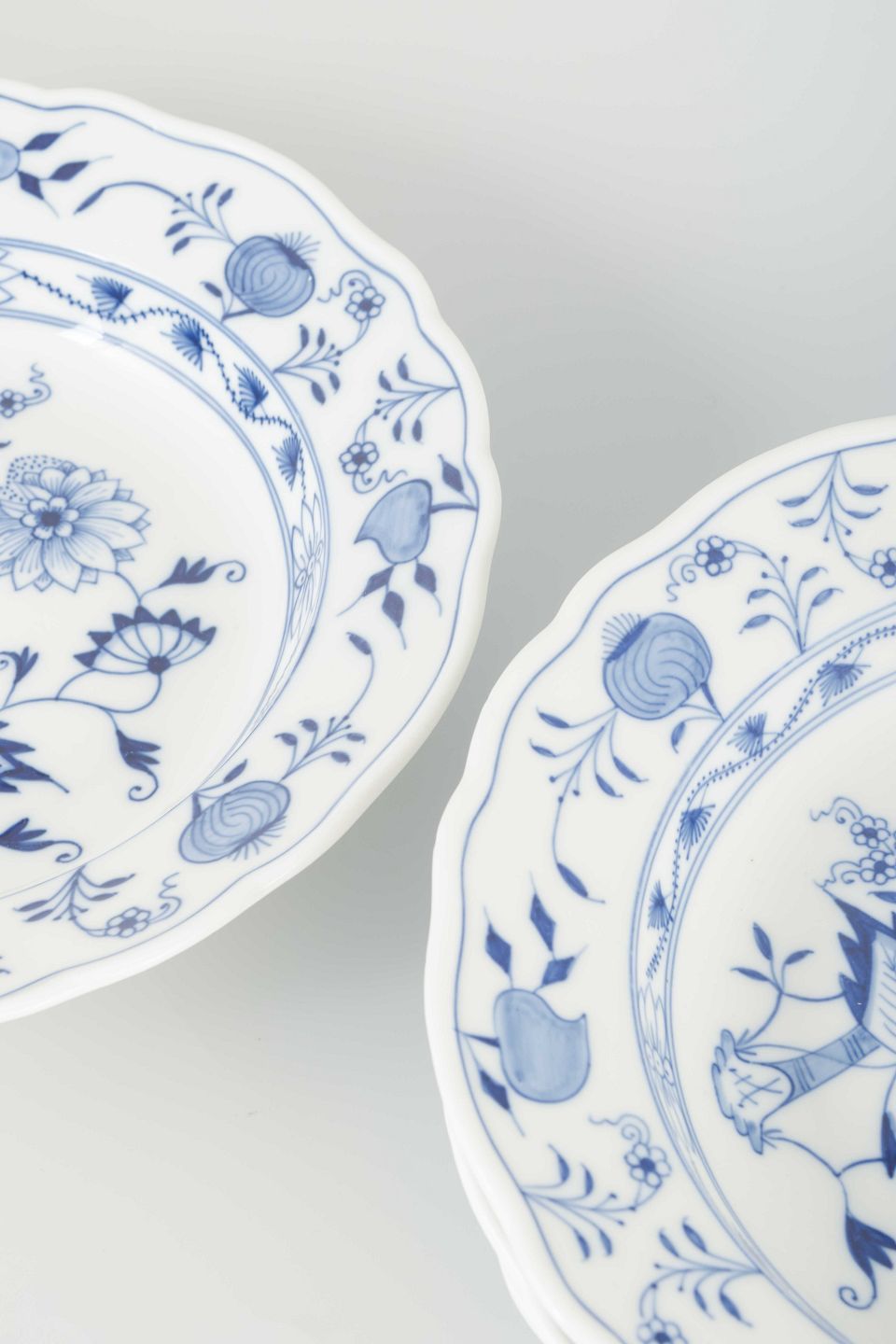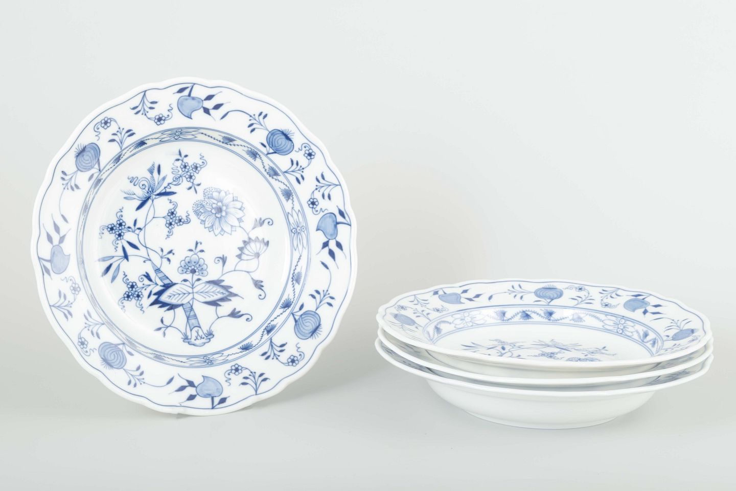 Meissen4 dybe tallerkener, “Løgmønstret”, midten af 1900-tallet.