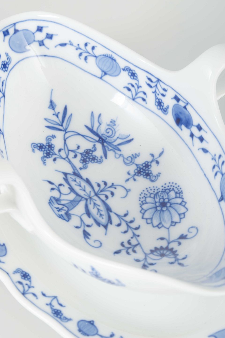 MeissenSovseskål med fastmonteret fad, “Løgmønstret”, tidligt 1900-tal.