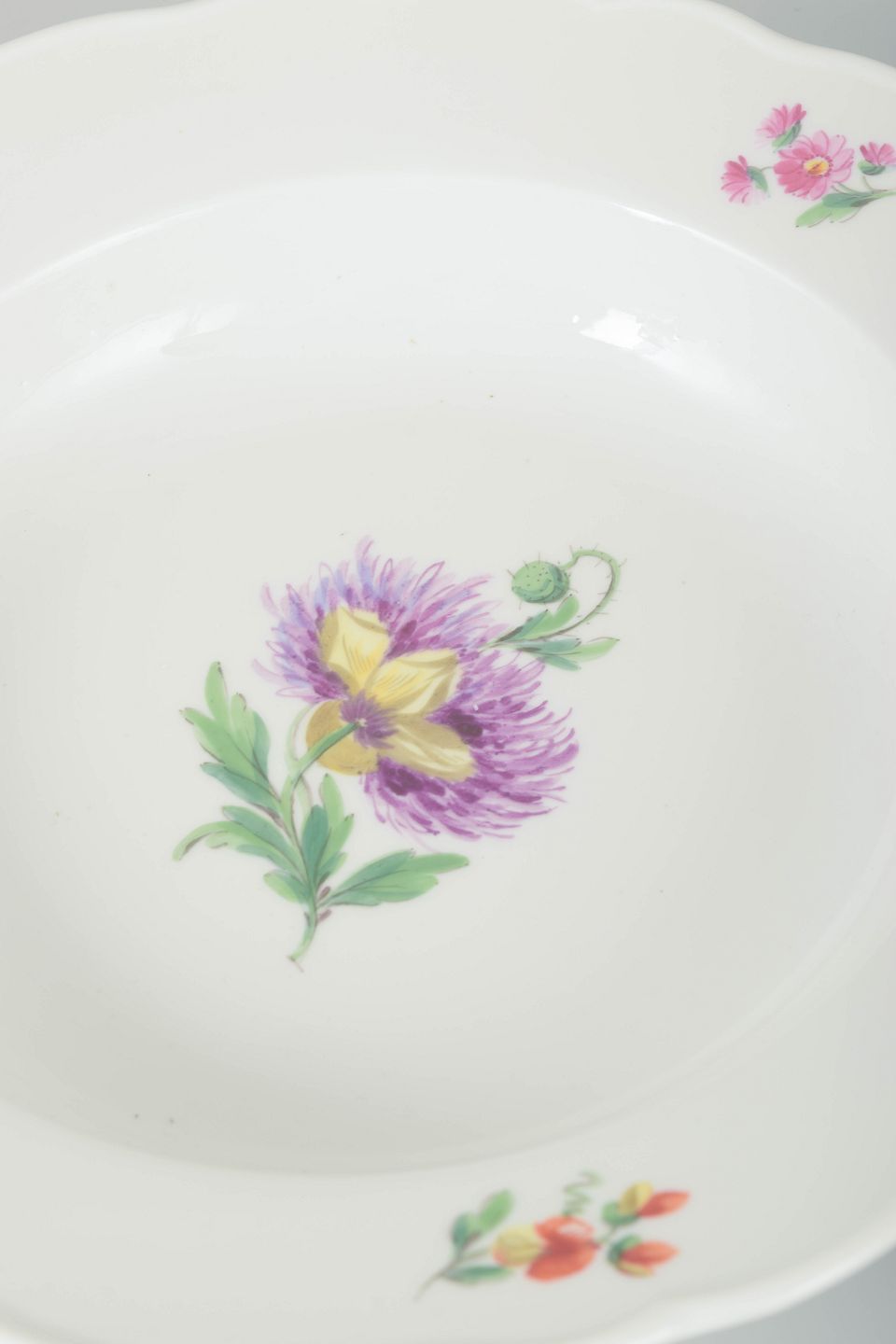 Meissen har siden begyndelsen af 1700-tallet været Europas førende porcelænsfabrik, kendt for sin håndmalede dekoration og tekniske perfektion. Blomsterdekorationerne, ofte inspireret af naturstudier, blev et symbol på manufakturens klassiske stil og håndværksmæssige kvalitet.