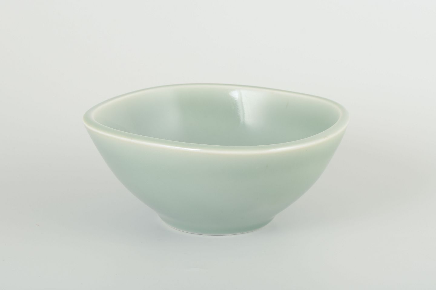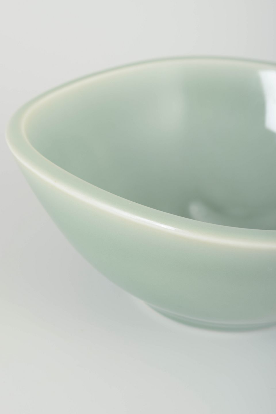 Drejet stentøjsskål med elegant celadonglasur i grønne toner. Enkel og harmonisk formgivning med glat overflade, typisk for Nils Thorssons arbejde i 1940’erne.
