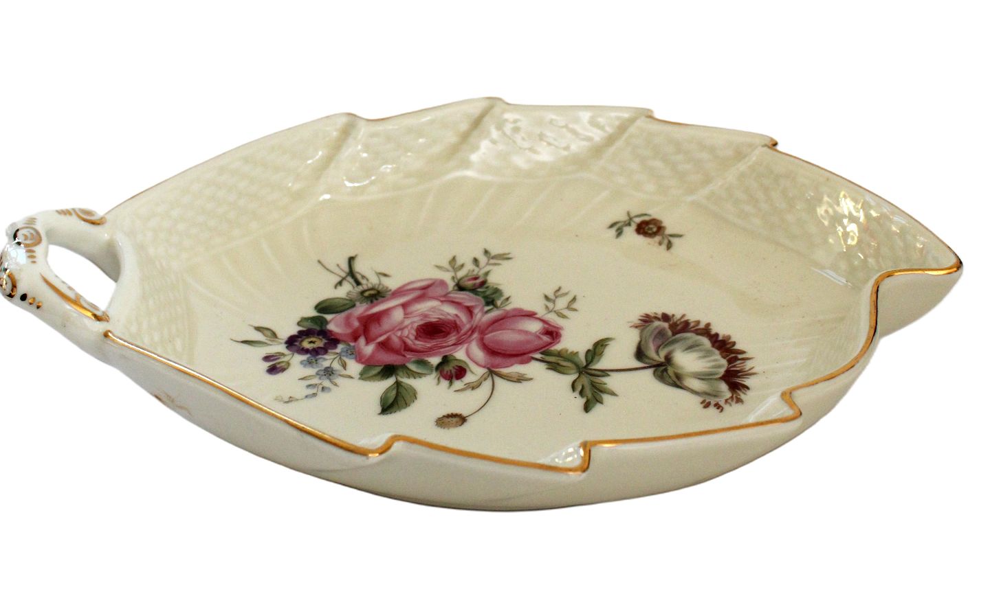 Royal Copenhagen, Frisenborg svejfet stel creme med forskellige blomstermotiver og guldkant. Nr. 910/1866. Længde 23 cm. Bredde 18 cm. I sortering. Pris: 125 kr. stk. Lager: 1 Händler