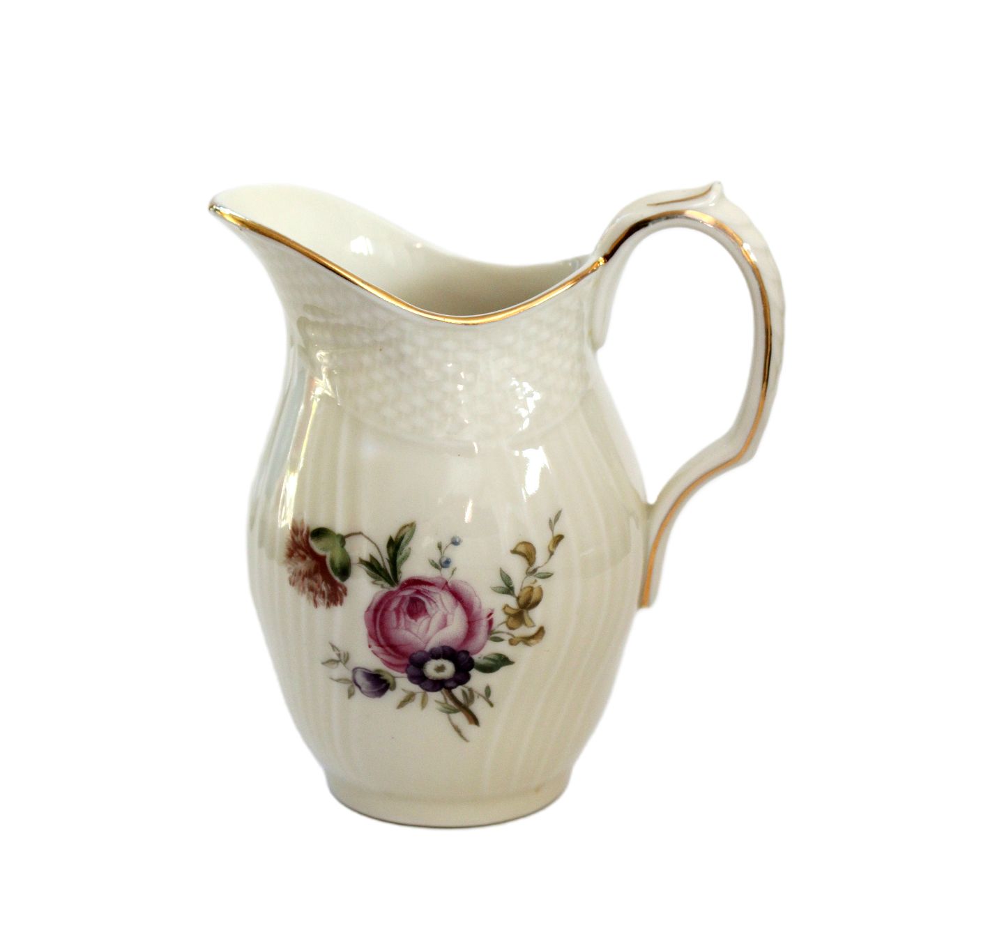 Royal Copenhagen, Frisenborg svejfet stel creme med forskellige blomstermotiver og guldkant. Flødekande. Nr. 910/1536. Højde 11,5 cm. Længde 11 cm. I sortering. Pris: 150 kr. stk. Lager: 1 Händler