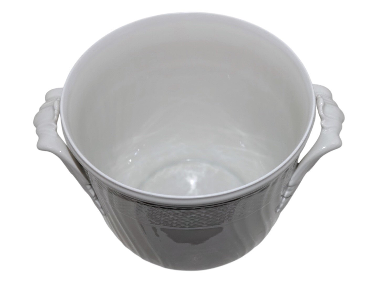 Royal Copenhagen Hvid Svejfet vinkøler / urtepotteskjuler.Tre af dem er produceret i 1963 og den sidste er produceret mellem 1980 og 1984.
