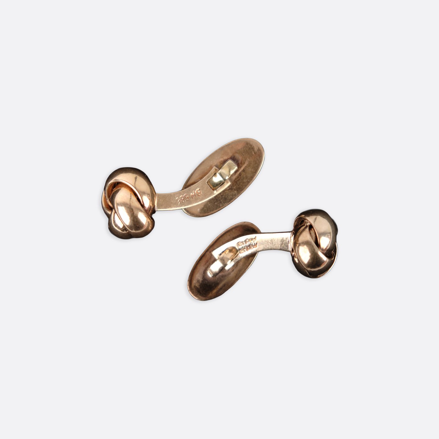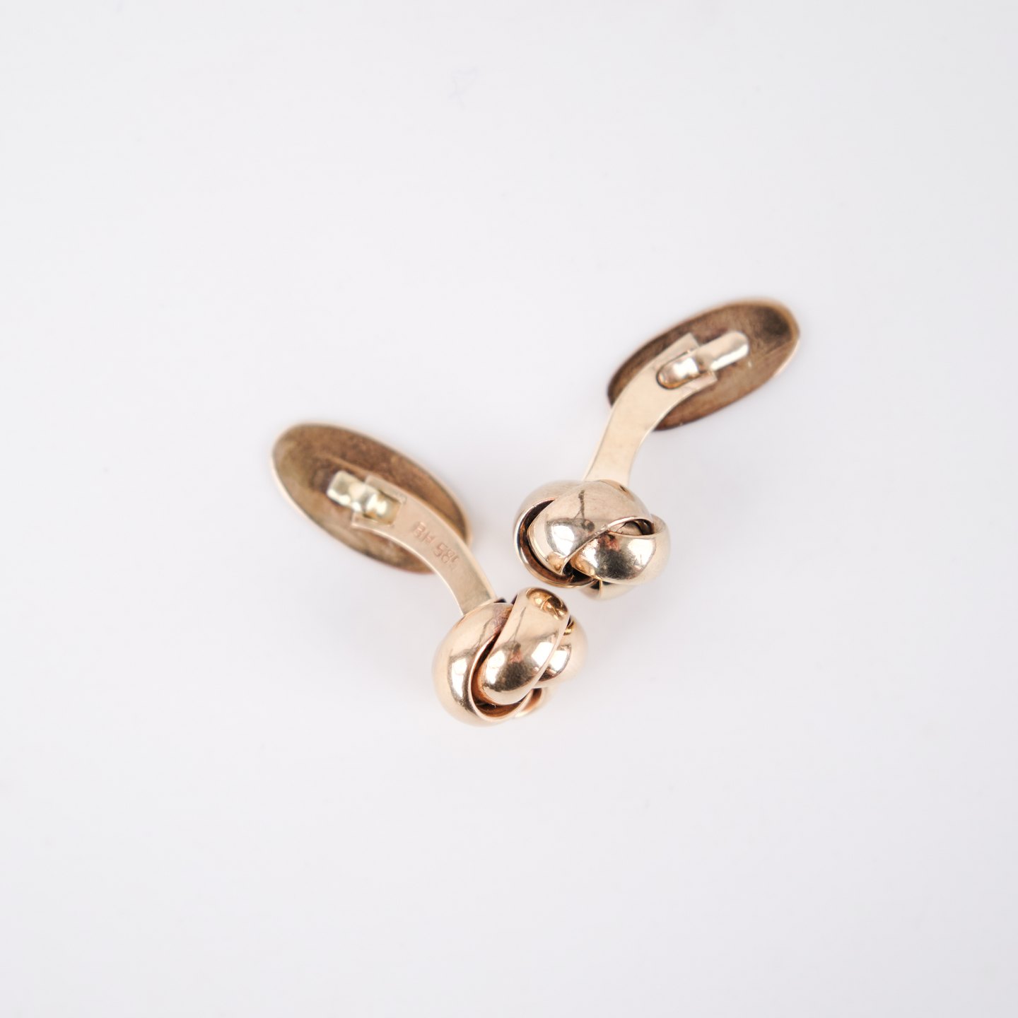 Ein Paar Manschettenknöpfe aus 14-karätigem Gold mit klassischem Knotenmotiv, gefertigt von Bernhard Hertz, Kopenhagen (1893–1937). Gestempelt BH 585. Ein elegantes und zeittypisches Schmuckstück eines anerkannten dänischen Herstellers.— Zeitraum: 1893–1937