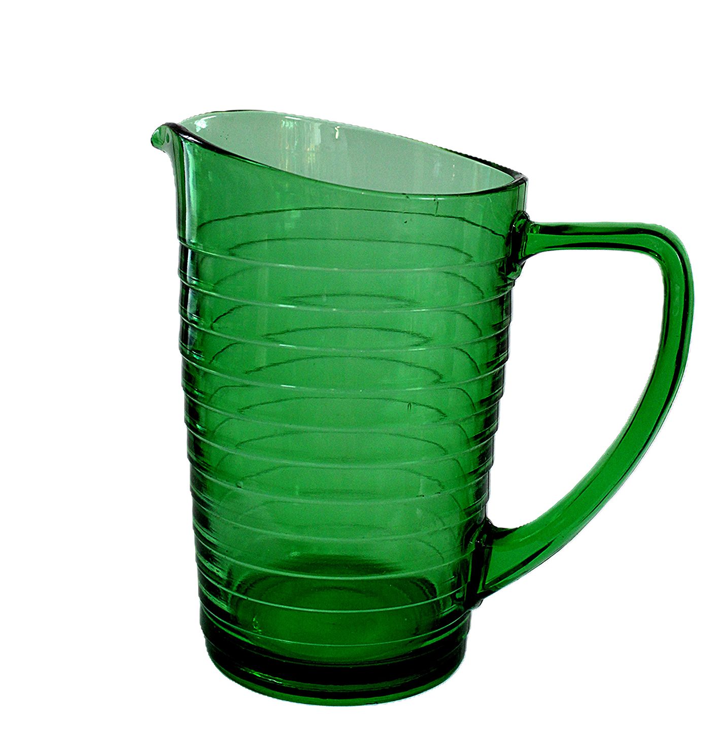 Holmegaard, Broksø presset glas 1938-1941, designet af Jacob E Bang. Transparent grøn kande. Højde 17 cm. Længde 17 cm. Produktions fejl "revne" i kanten. Pris: 175 kr. stk. Lager: 1