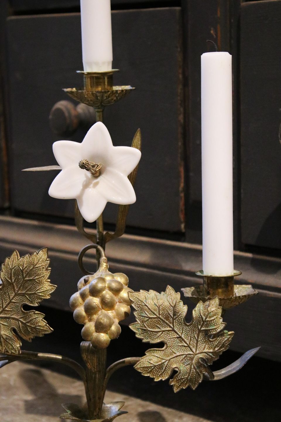Dekorativ , 1800 tals fransk kirkelysestagemed plads til 3 stearinlys...